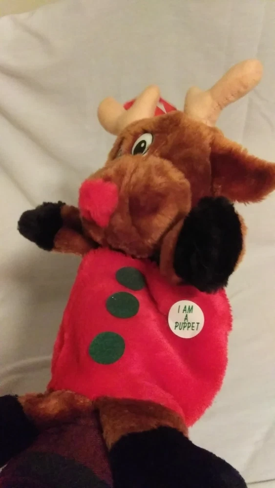 Adorable Rudolph The Red Nose Reindeer Hand Puppet by Santa's Best. Approximately 14" long. Fun for the whole family. AFTER CHRISTMAS SALE. REDUCED FROM $9.99.