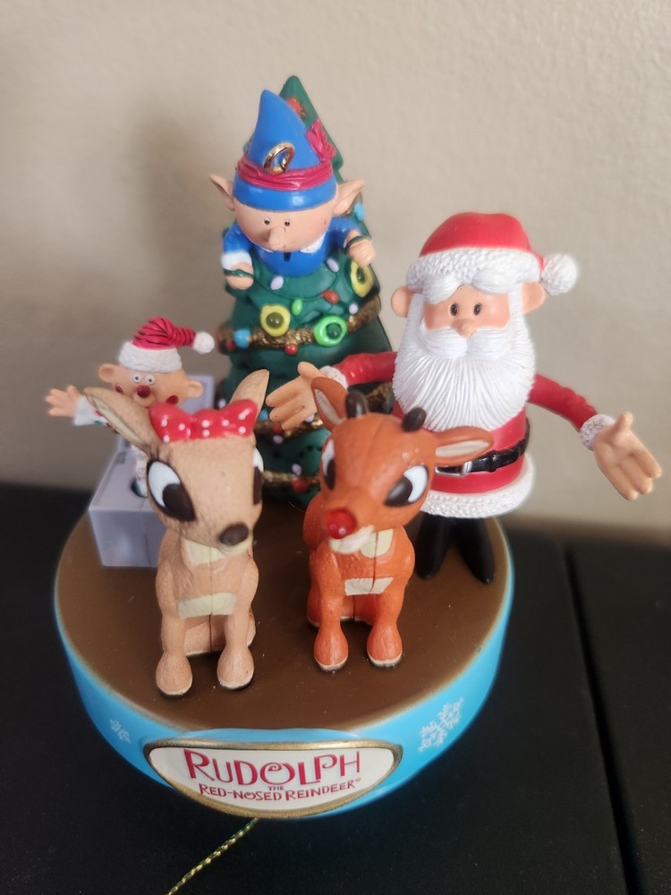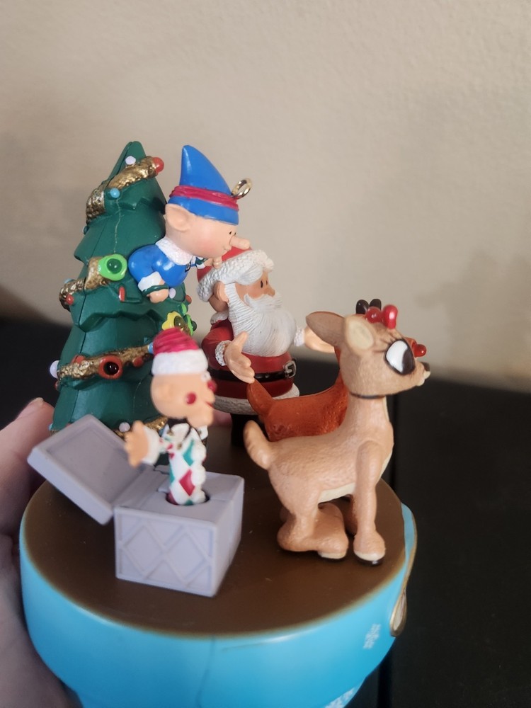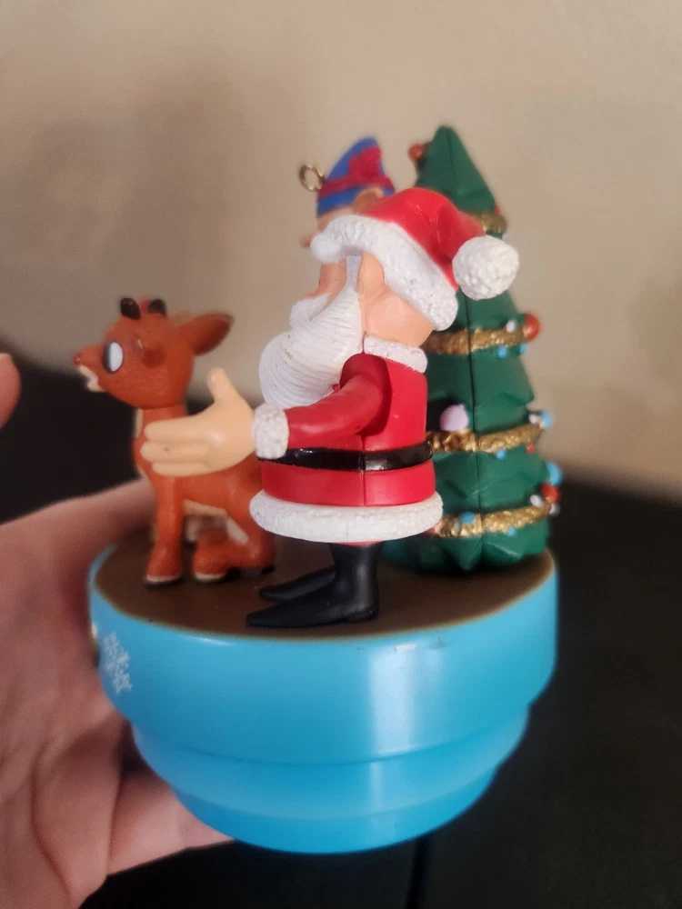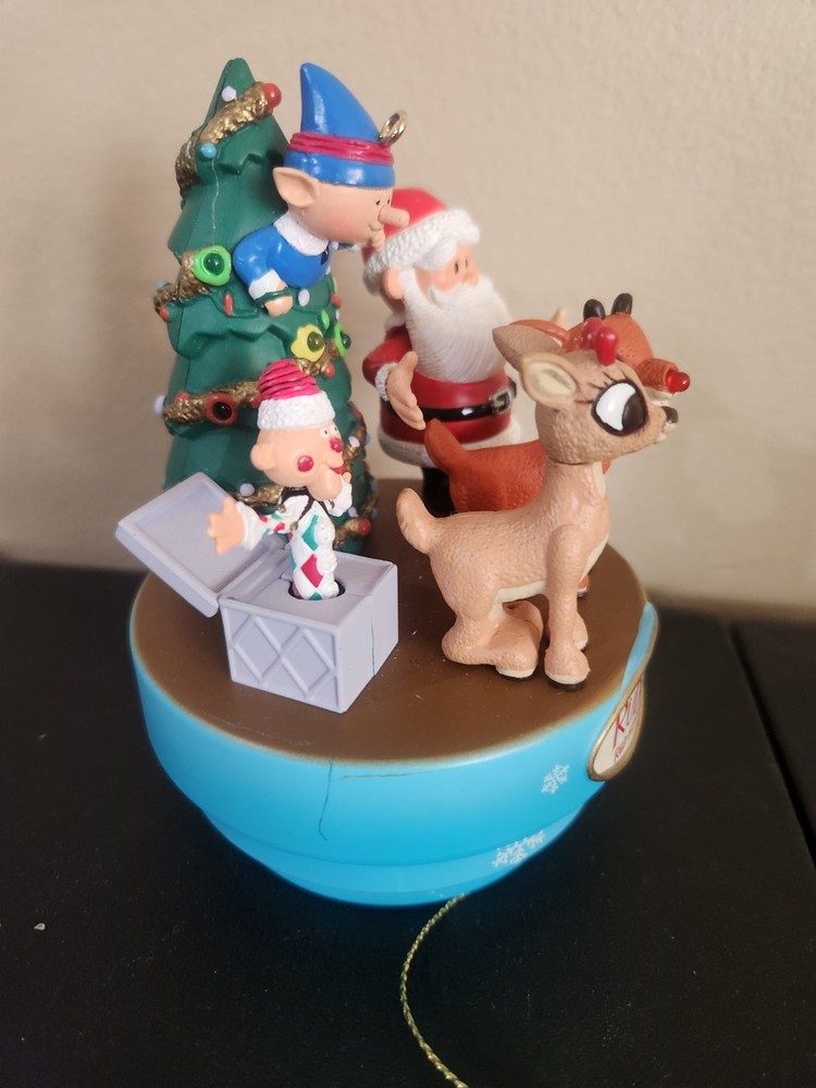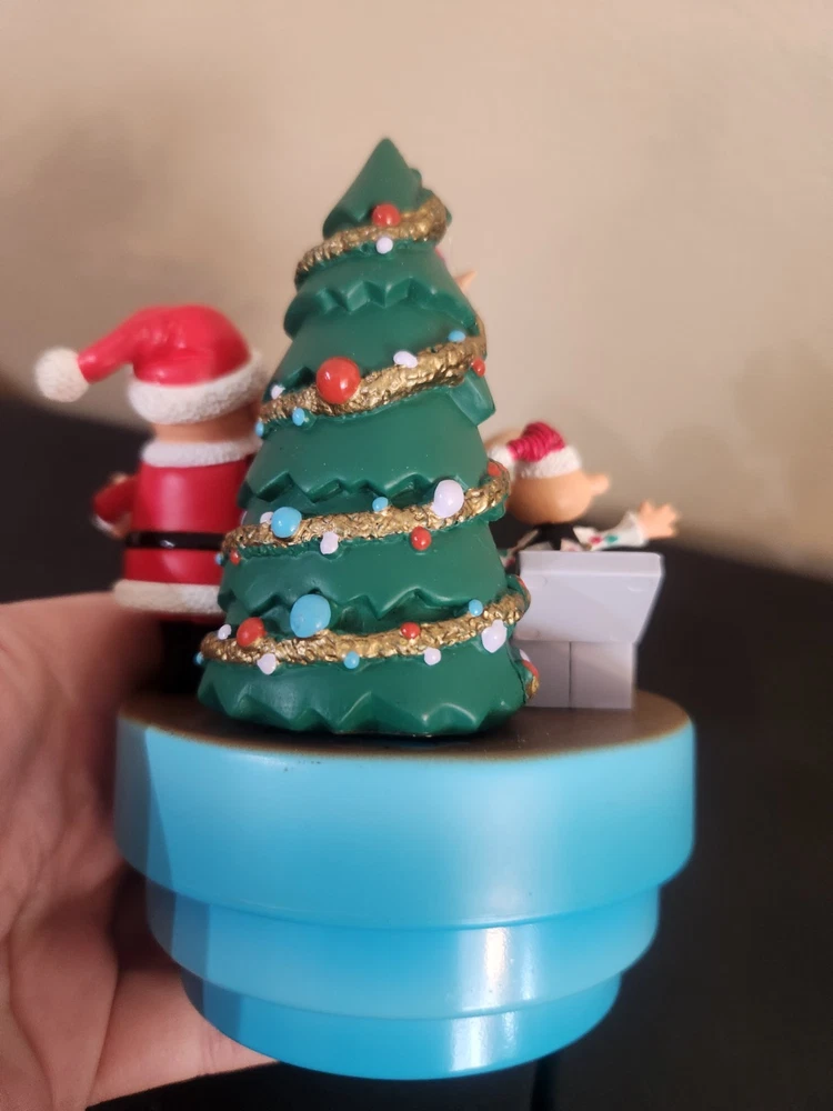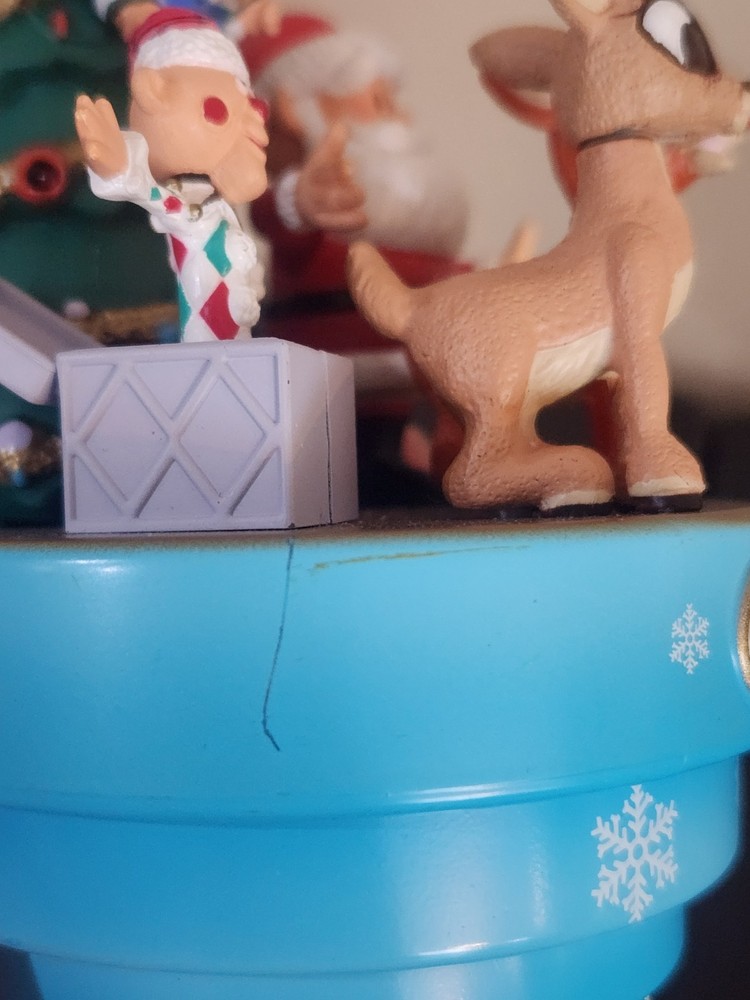 In good working condition. Missing the original box. Is subject to some wear from storage and use. Does have a crack on the side as pictured but doesn't affect the ornaments use. Batteries not included. From smoke and bug free home.