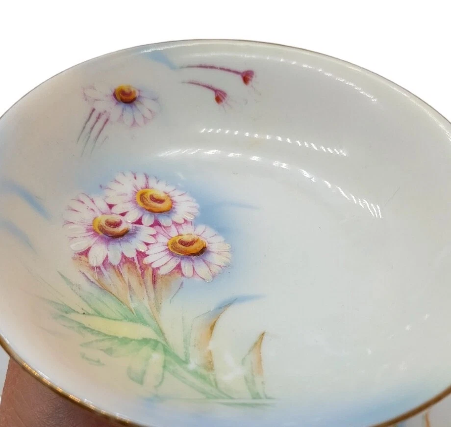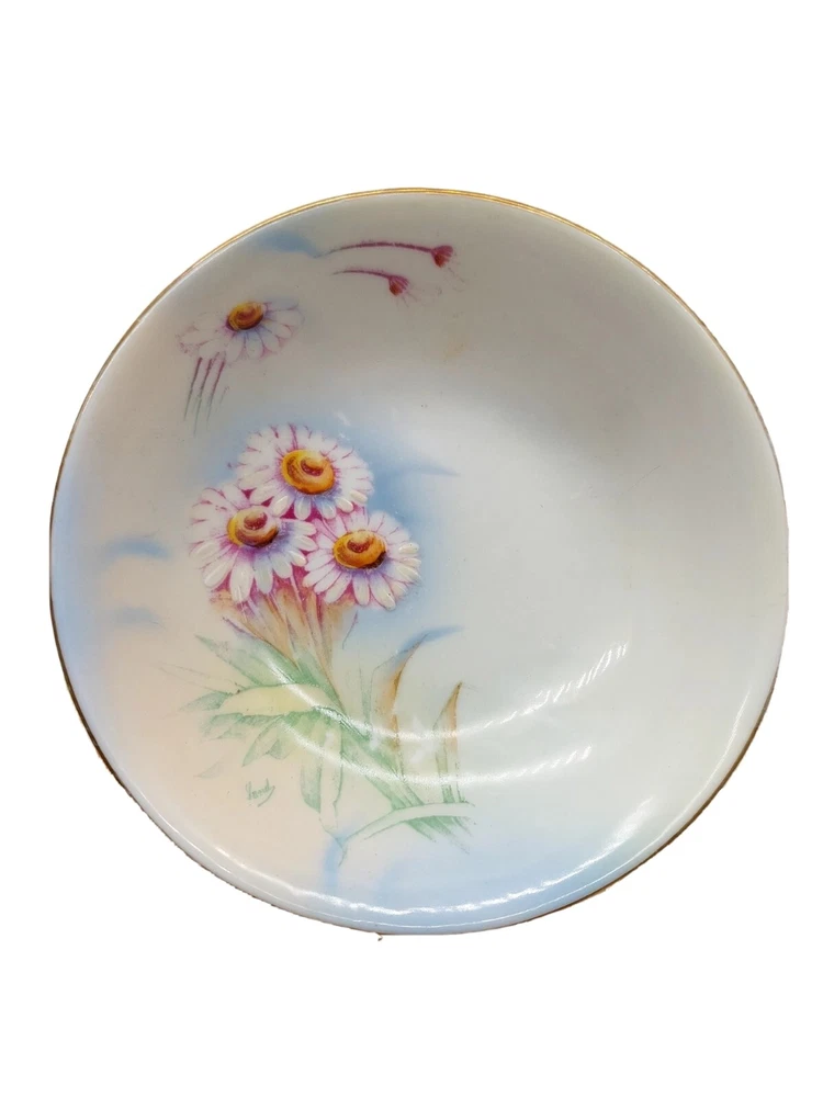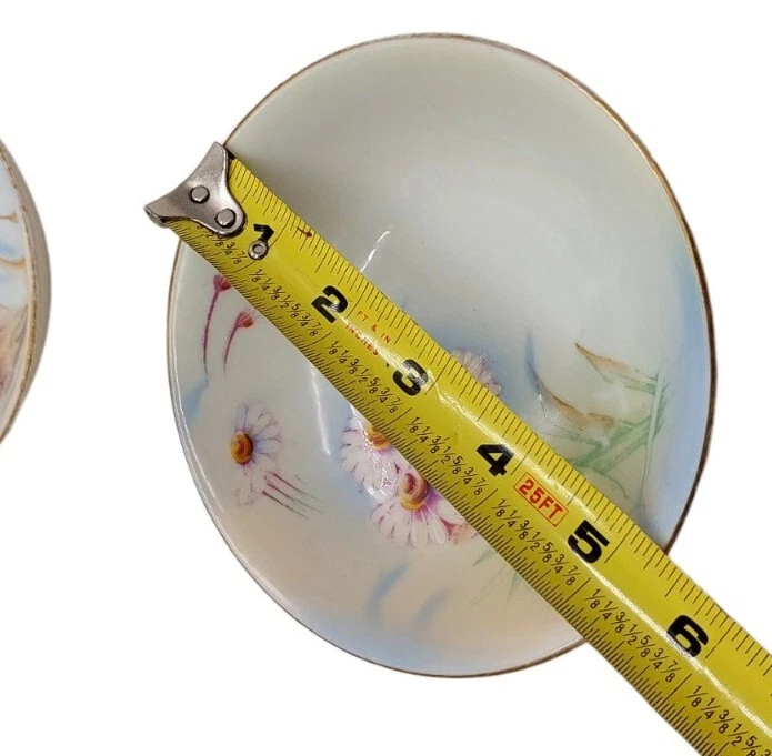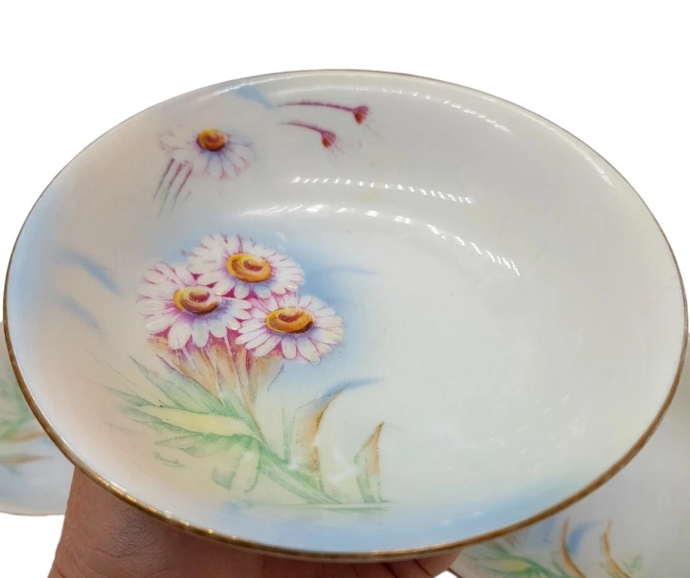 One saucer has small crack on edge. Please see attached photos Rudolstadt Thuringia Hand Painted 5" blue floral set of 4 READ.