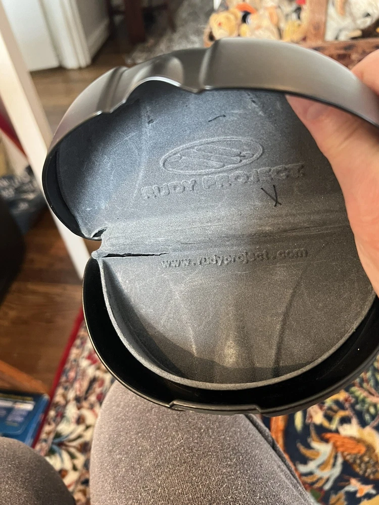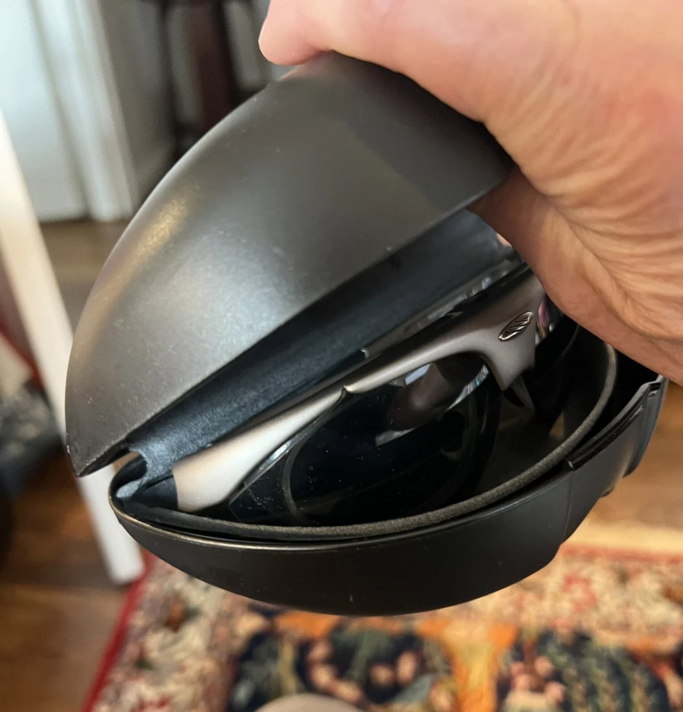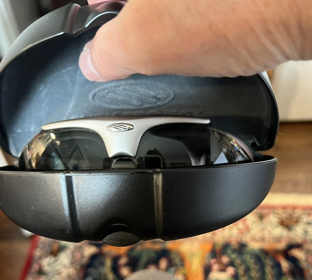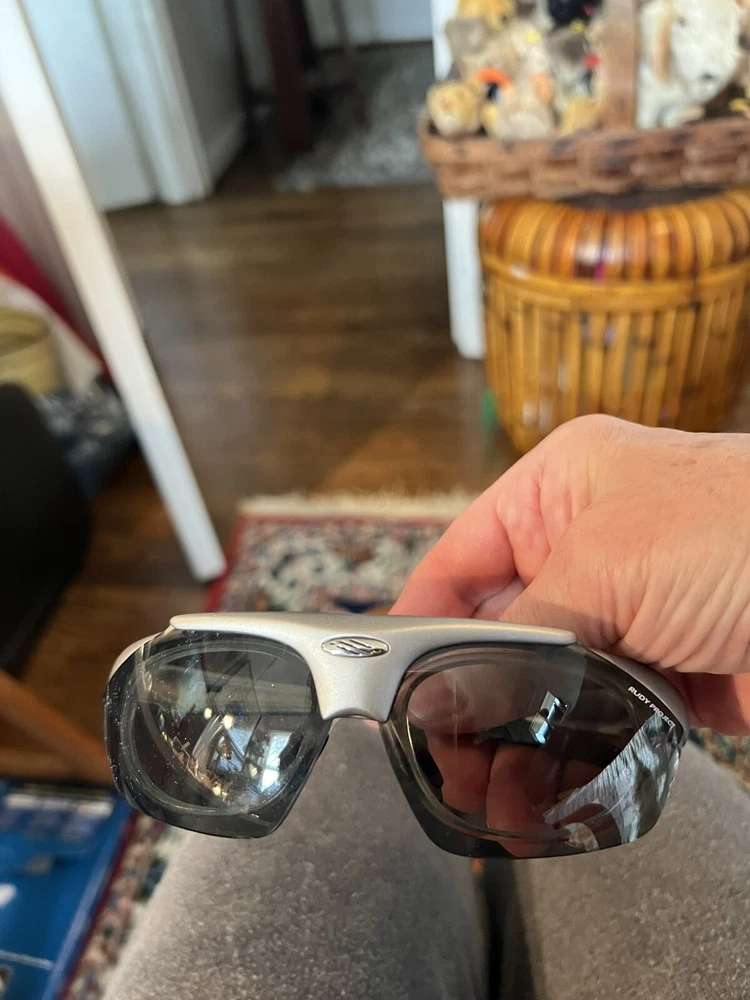 Rudy Project has created innovative sports eyewear and helmets since 1985. Rudy Project's sunglasses use advanced lenses to maximize athletes' visual clarity, minimize glare and protect their eyes, while ergonomic shaping ensures their comfort. These Rudy Project Sunglasses feature a black frame with silver accents, complemented by black lenses. They are in mint condition, not sure if they were ever worn at all. Made in Italy, these unisex adult sunglasses also come with a plastic case to keep them safe. A must have for bikers!!
