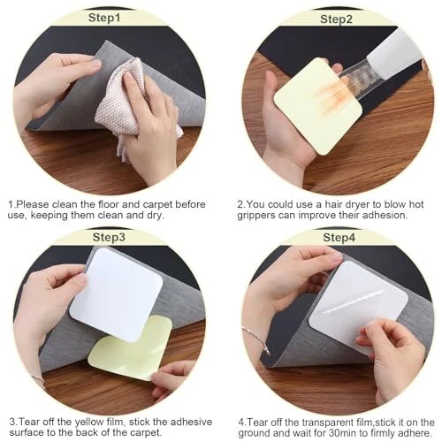 Return Policy Fast Delivery Trusted seller Rug Tape 8PCS Square Reusable Washable Cuttable Non Slip Carpet Grips 4"x4" No Damage Prevent Sliding Floor Rugs Pad Set, Rug Grippers for Area Rugs on Hardwood Floors Tiles Home Office Product Description 【Square More Sturdy】Square carpet handle has a larger size of 4 "x 4", providing more corner coverage than the triangular carpet handle, making the grip safer and more reliable. In addition, the larger size provides you with the freedom to cut freely. You can cut the carpet into appropriate sizes based on its size and shape, making the carpet stickers more consistent with the carpet. 【Reusable and washable】Carpet clips can be cleaned together with the carpet. You need to put them in a laundry bag and choose a mild machine wash mode, but do not soak them in water for a long time. After cleaning, wait for the anti slip adhesive to dry and regain its stickiness before reapplying it to the floor. 【Anti slip safety】Simply fix the anti slip carpet clip to the corners and edges of the carpet to prevent it from slipping, making it smoother, more comfortable, and reducing or even preventing tripping. This can better protect you and your family, creating a safer environment for you. 【Easy to Install and Peel Off】Tear off the yellow protective sticker and stick the bonding surface onto the carpet. Press the carpet tightly onto the clean and smooth floor. Please note that the side pasted on the carpet cannot be peeled off. Due to its use of vacuum technology, you can easily tear it off the floor when needed. T will be no residue or glue on the floor. 【Widely used】Carpet tape is flexible and durable, suitable for carpets, tiles, felt, hardwood floors, and other indoor surfaces. This means you can use it in the kitchen, bathroom, living room or office, especially in children's and elderly rooms. Shipping Returns Payment Shipping Shipping is FREE to all addresses other than APO/PO boxes in the lower 48 states. All our stock ships from US-based warehouses. Shipped via USPS or UPS (depending on location and package weight) Unless stated otherwise, all orders will ship within 24-72 hours of your payment being processed. Check our feedback to see the great reviews of FAST shipping we offer. Returns Seller does not accept returns Payment We currently accept payment via eBay managed payments only. Once payment is cleared, we will dispatch your shipment within 1-3 business days. Please refer to the "Shipping" tab for more information regarding shipping speed to your destination.