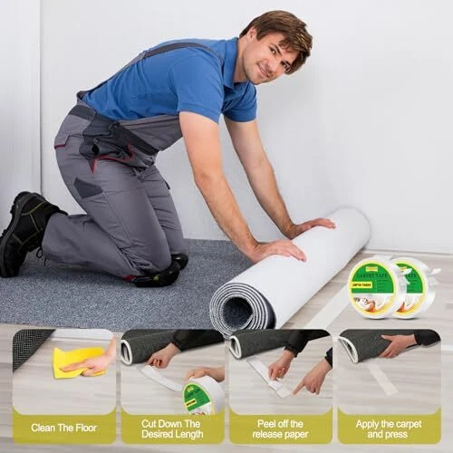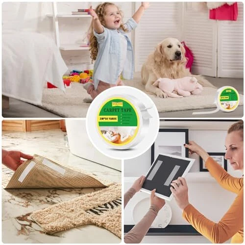 Return Policy Fast Delivery Trusted seller 2" x 50 Yards Rug Tape, Double Sided Tape Wall Mounting, Removable Rug Gripper for Hardwood Floor, Residue Free Carpet Tape for Area Rugs, Keep Rugs from Sliding, Anti Slip Tape for Mattress, Cushions Product Description ✅【LARGE DOUBLE SIDE TAPE】The size of heavy-duty carpet tape is 2 inches x 50 yards x 11 mils, 2 sided rug gripper size is large enough to cover any corner of the carpet, whether it is area carpet, stair carpet, bathroom carpet, or mat, rug tape for tile can easily meet various carpet laying needs. Carpet ashesive tape adopted has strong grip can ensuring that the carpet will not move or curl, effectively prevent family members from tliding and protecting their safety. ✅【 SUITABLE FOR VARIOUS SURFACES】Anti slip rug tape for carpet floor with durable grid fiberglass, this makes the non-slip carpet gripper have compatibility to various surfaces, whether on rough tiles, vinyl, concrete, wood, cement and other surfaces, or smooth hardwood floors, bathroom tile floors, tile walls, carpet gripper is strong adhesive force ensures that it can firmly ad to various surfaces, not easy to peel off, and show strong durability and stability. ✅ 【EASY TO USE RUG TAPE 】Rug stopper is a practical rug installation tool. Just clean the surface you want to stick to carpet, cut to the required length according to the size and shape of the carpet, and then glue rug gripper tape on. The back of carpet tape for rugs has a smooth peeling paper, whether you are laying new carpet at home, or replacing new carpet in an office or business. Rug 2 sided tape tile floor make the carpet installation and removal process easier and faster. ✅【NO RESIDUE NO DAMAGE】Our carpet stickers are no need to wait for curing or drying to achieve the instant adhesive process of the carpet tape for rugs. Compared with traditional tape, our rug anti slip grips truly achieves seamless removal, you can easily peel it off the floor and carpet tape for area rugs no damage, and without leaving any residue, extending the service life of the carpet. Removable grippers for rugs can also reduce your time and effort in cleaning and maintenance. ✅【MULTI-PURPOSE ADHESIVE TAPE】The gripper for rug is a very practical house items, non slip rug pads tape easily keep in place rugs, carpets, furniture, sofa cushions, tablecloths, bed sheets other items you want to fixed. The two sided tape has good durability, stability carpet rug stoppers to prevent sliding, Carpet grippers for floors, stairs, kichen,bathroom ground. carpet tape is also suitable for all kinds of crafts, family, office tile wall hanging photo frame, hooks, sockets, home decoration etc. Shipping Returns Payment Shipping Shipping is FREE to all addresses other than APO/PO boxes in the lower 48 states. All our stock ships from US-based warehouses. Shipped via USPS or UPS (depending on location and package weight) Unless stated otherwise, all orders will ship within 24-72 hours of your payment being processed. Check our feedback to see the great reviews of FAST shipping we offer. Returns Seller does not accept returns Payment We currently accept payment via eBay managed payments only. Once payment is cleared, we will dispatch your shipment within 1-3 business days. Please refer to the "Shipping" tab for more information regarding shipping speed to your destination.
