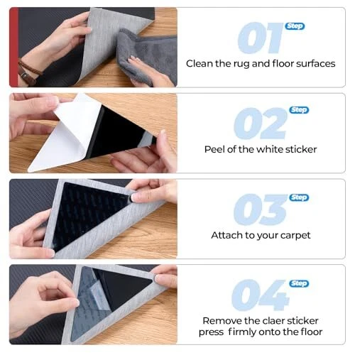 Menu 1. We require immediate payment. 2. We currently accept payment via eBay managed payments only. 3. Once payment is cleared, we will dispatch your shipment within 1-3 business days. Please refer to the "Shipping" tab for more information regarding shipping speed to your destination. Rug Tape, Triangle Rug Pads Tape Stickers, Double-Sided Reusable Washable Rug Stoppers to Prevent Sliding, Carpet Corner to Hold Rugs in Place for Indoor Hardwood Tile (24, Triangle) Product description 【Triangle Carpet Grips】AMYFAY's triangle-shaped rug grippers are uniquely designed to increase contact with the corners of your floors, ensuring that your rugs remain firmly in place. Not only enhances the safety of your space by preventing rug movement but also preserves the beauty and integrity of your area rugs. 【Anti Slip & Anti Curling】Carpet anti slip stickers can prevent slipping or curling of carpet edges, suitable for indoor and outdoor carpets of any shape, keeping your carpet in place. Avoid slipping and falling accidents, and properly solve annoying carpet sliding and curling problems. 【Wahsable & Resuable】Crafted from a thin, invisible material that doesn't compromise your rug's appearance. Easily washed with water or rubbing alcohol, these grippers can be reused, providing a long-lasting, cost-effective solution. 【Hassle-Free Installation】Easily install these grippers without any professional tools or help. Clean the floor area, attach the adhesive side to the rug, and firmly place it on the floor. This quick and straightforward process allows you to instantly secure your rugs throughout your home. 【No Residue & No Damage】Carpet tape Hardwood flooring is designed with the latest bonding technology, so t will be no adhesive residue when removed. They are ideal for all types of flooring surfaces including hardwood, tile, and marble. PLEASE MESSAGE US IF YOU HAVE ANY OTHER QUESTIONS, AND MANY THANKS FOR READING ALL OF THIS. Copyright ©#. All Rights Reserved.