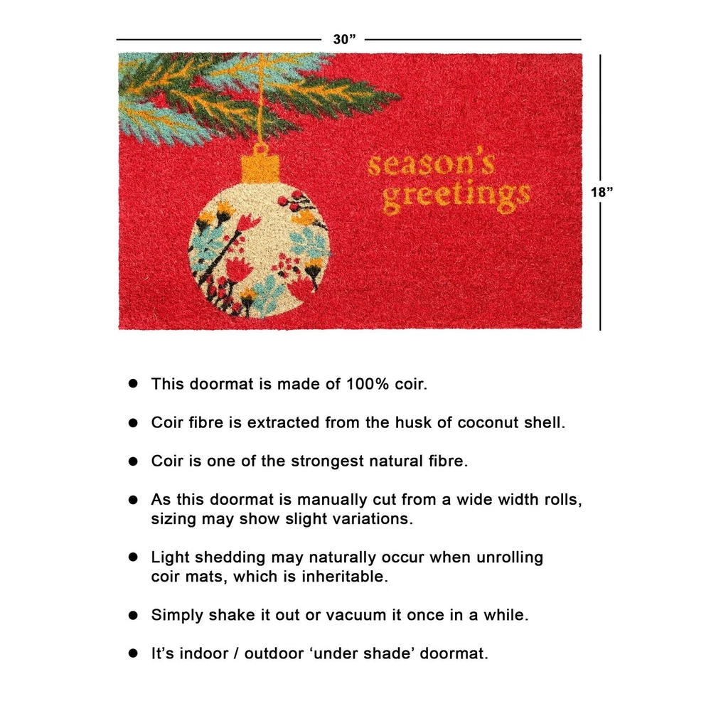 Make your home more inviting with our printed contemporary doormat. Crafted of coir, a fiber made from the husk of a coconut, this textural piece will keep the outdoors out and the indoors a little cleaner. Coir face with vinyl non-skid back. To clean simply sweep or shake. Made in India.Features: Recommended for Indoor or Outdoor Use Under ShadeSweep or Shake CleanMade from Coir, one of the strongest natural fibersPerfect for all entrywaysNon-Skid Backing Free Shipping Over $49.99* Details RugSmith Multi Machine Tufted Seasons Greetings Doormat, 18" x 30" - 18" x 30" Product Description: Make your home more inviting with our printed contemporary doormat. Crafted of coir, a fiber made from the husk of a coconut, this textural piece will keep the outdoors out and the indoors a little cleaner. Coir face with vinyl non-skid back. To clean simply sweep or shake. Made in India. Features: Recommended for Indoor or Outdoor Use Under Shade Sweep or Shake Clean Made from Coir, one of the strongest natural fibers Perfect for all entryways Non-Skid Backing