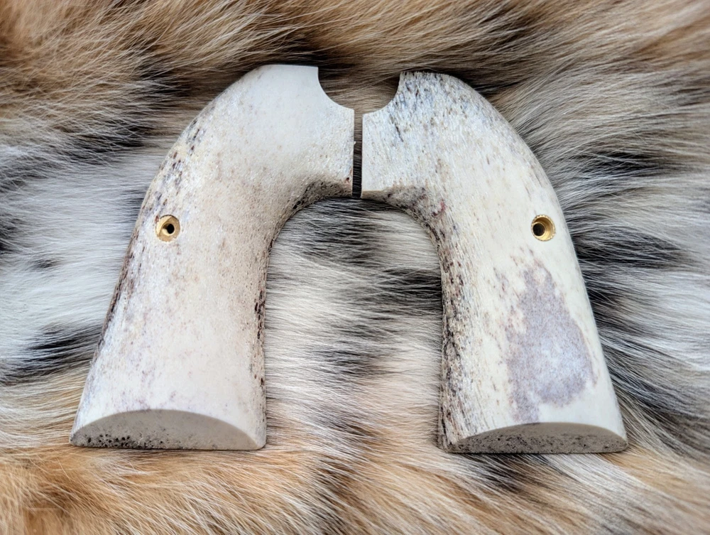 Ruger Bisley Blackhawk Elk Antler Grips Superior Custom Build and Quality These handcrafted elk antler grips are designed for Ruger Bisley frames, featuring the distinctive 1/2 moon cutout at the top. Each pair is crafted from naturally shed antlers, providing a unique and durable finish that enhances the look and feel of your firearm. Experience the rugged beauty and reliable grip of nature’s finest material with these custom grips. Fits the Following Ruger Bisley Models: Ruger Bisley Ruger Bisley Vaquero Ruger Super Blackhawk Bisley Ruger Super Blackhawk Hunter Bisley Shipping & Guarantee: Fast 1 Business Day Turnaround : We know you're eager to enhance your Ruger, so we ship all orders within 1 business day. Free Domestic Shipping : Shipping within the U.S. is on us, at no additional cost to you. Expedited Shipping Options: Need your grips faster? Choose an expedited shipping option at checkout. 30-Day Money-Back or Replacement Guarantee: All domestic orders include a 30-day money-back or replacement guarantee, with free return shipping covered by us. If you have any questions or special requests, please don't hesitate to reach out. We're happy to assist!