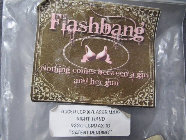 The Flashbang Inside the Bra Holster Ruger LCP w/Laser MAX Kydex/Leath Holster This is an inside the bra holster design to fit the Ruger LCP w/Laser MAX Your satisfaction is guaranteed-bid with confidence Thank you for visiting with us! Bob's Gun and Tackle Shop