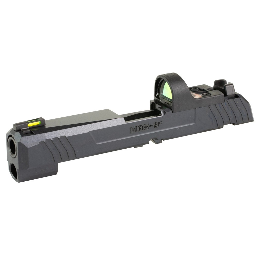 Ruger, MAX-9 Long Slide Assembly, Complete Slide, Includes Ruger ReadyDot, Sights, 4" Barrel, Extractor, and OtherSlide Components, Compatible with Ruger MAX-9, Oxide Finish, Black New Warning Complete Long Slide Black Oxide Finish Ruger ReadyDot Included 4" Barrel Product Description This MAX-9 Long Slide Assembly with ReadyDot Sight allows for installation of micro red dot optics on MAX-9 pistols. This Slide Assembly comes equipped with a ReadyDot micro reflex light-gathering fiber optic red dot sight already installed. It also comes turnkey with all sights, 4" barrel, extractor and other slide components to simplify installation using the included installation instructions (attached below). Read the included instructions and warnings carefully before installing and using this slide assembly. This Genuine Ruger Factory Accessory is made in the USA. Specifications UPC 736676907519 Manufacturer Ruger Manufacturer Part # 90751 Model MAX-9 Type Slide Color Black Description Slide Assembly with ReadyDot Subcategory Handgun Parts Finish Black Oxide