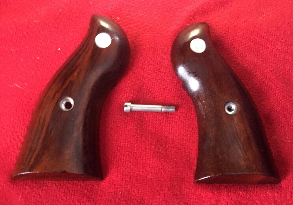 Ruger Redhawk Factory Grips Wood With silver medallions With the center screw Low cost, fast and insured postage Buy them now when you need them now!