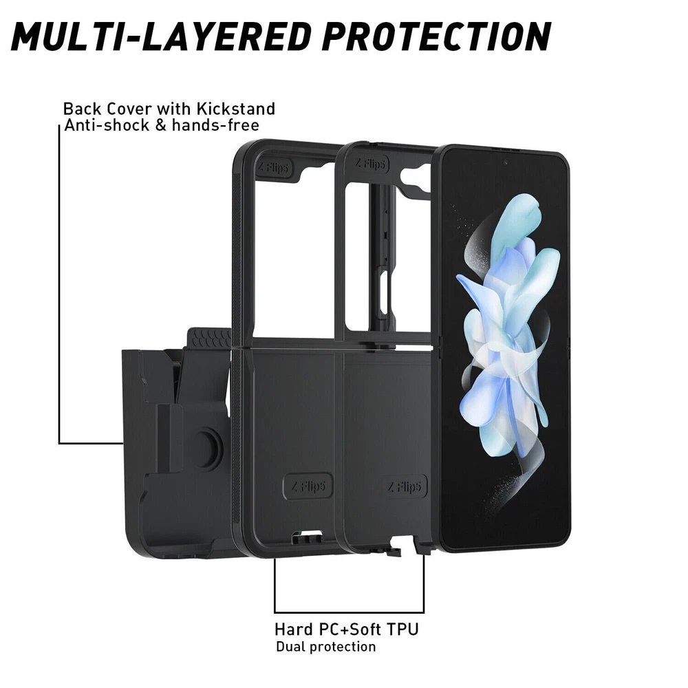 Product Description For Samsung Galaxy Z Flip 6 This is Unbranded Non OEM and No Otter Box Logo on Case. With Belt Clip Holster No Screen Protector Built in the Case Package Included 1x Unbranded Shockproof Case Cover 1x Unbranded Belt Clip fits Otterbox defender Series Installation instructions: 1) Remove the outside layer carefully by hands. (Do not use tools to prevent damage) 2) Open the inside shell by separating the two halves at the tabs as arrows pointed. 3) Place the phone between the hard plastic halves. 4) Click the hard plastic case closed, and install the outside rubber case. Features 1. Rugged Hybrid Skin Generic Case Cover Protect your device with our premium case. 2. This accessory provides protection by preventing the device from dust and unnecessary scratches. 3. It is made to fit perfect and gives the device its maximum protection. 4. The high quality material is reinforced from the front edges, sides and back to prolong the life of the case. 5. Besides its protection, it also has openings precisely made for the top and side buttons, charger port/dock connector, headset jack and speaker which allows you full access to all the functions on your device. 6. Easy to install and last for a long time, our premium cases will help keep your device safe. 7. It comes with belt clip fits Otterbox defender Series