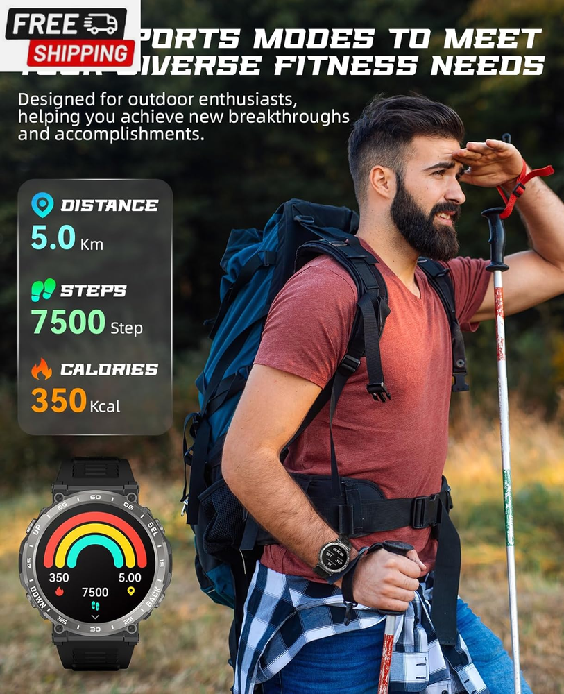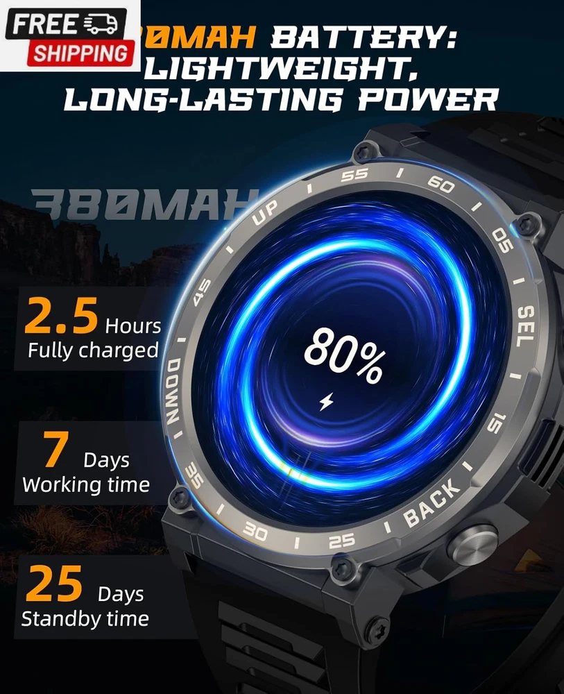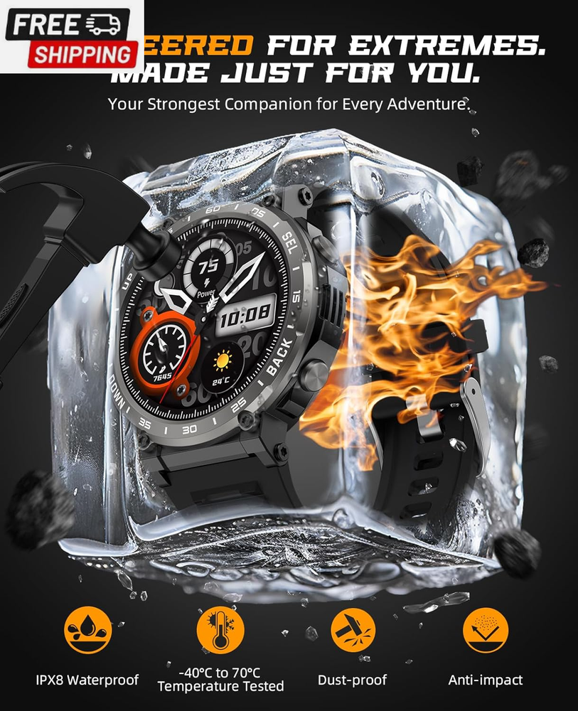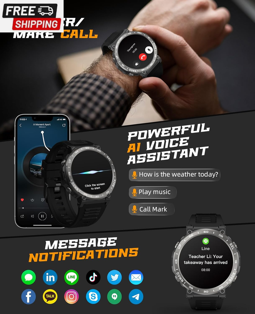 This tactical smartwatch is a game-changer! The call quality is crystal clear, it tracks all my workouts perfectly, and the battery lasts for days. Super fast shipping and excellent customer service too - absolutely love it!