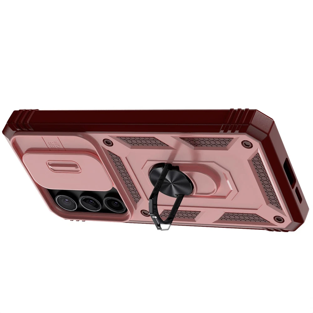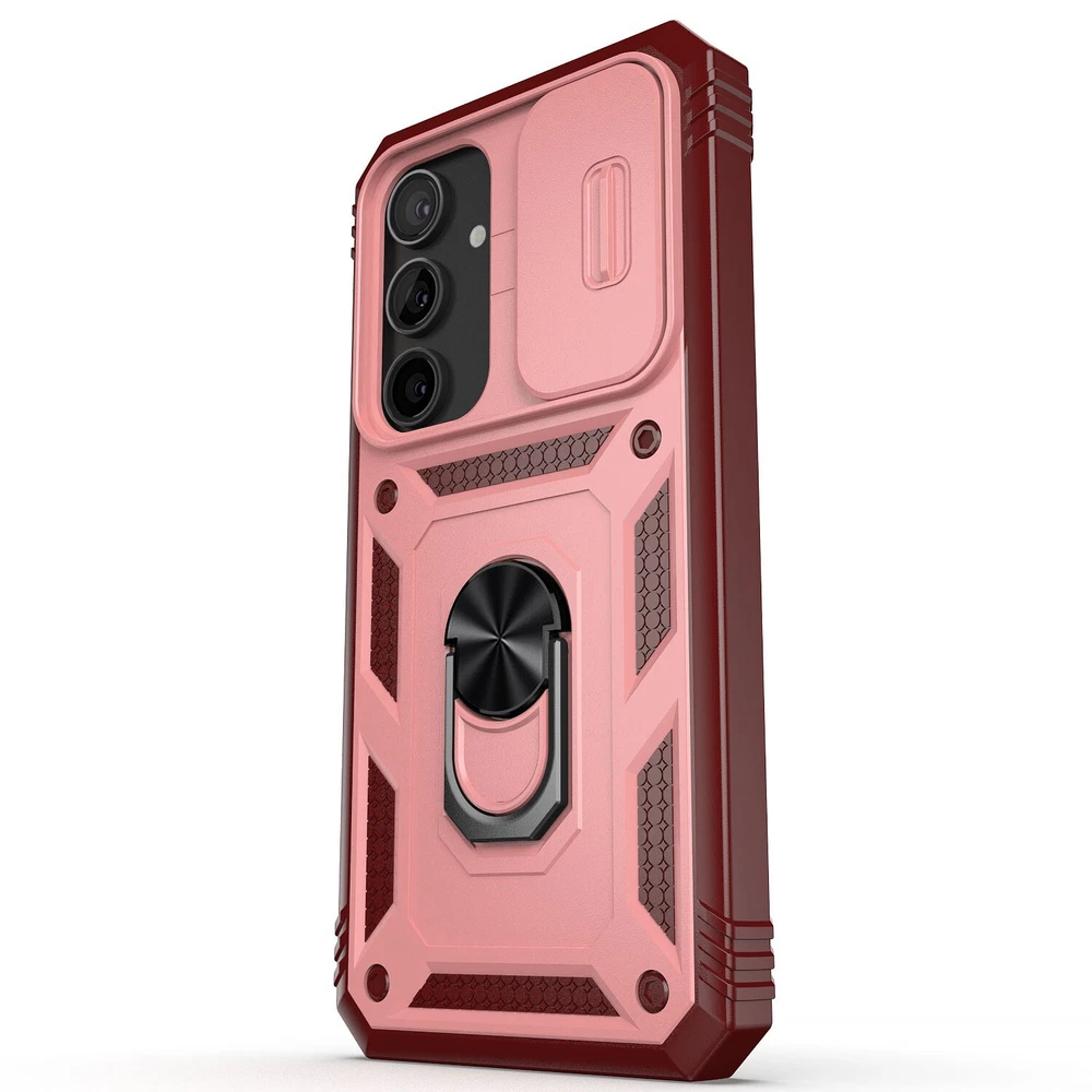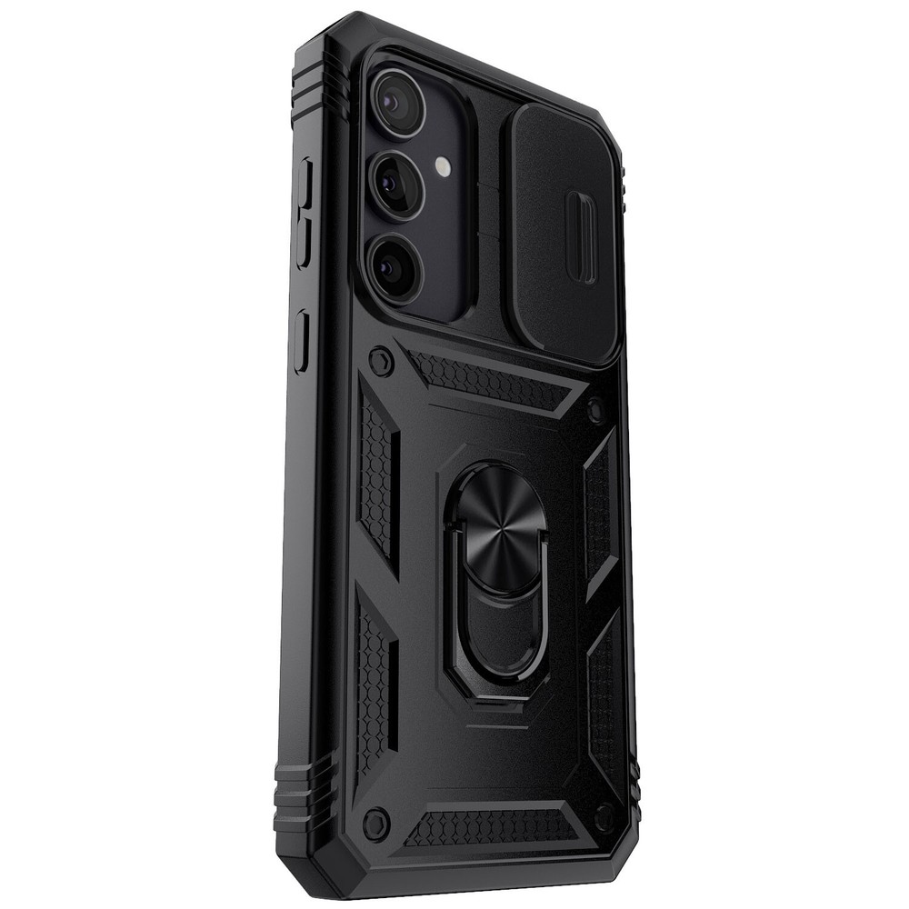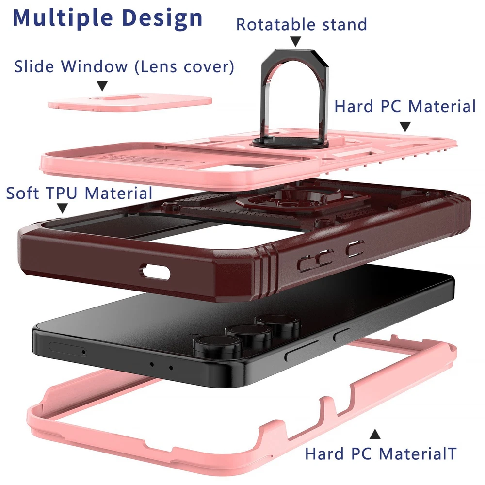 Compatible With: For Samsung Galaxy S24 FE Features: ▪ High Quality: The frame is made of flexible TPU silica gel which avoids your phone falling from high place. The back side of the case is made of hard PC that provides scratch protection. ▪ with Side Camera Cover: Slide cover design for protecting and hide the camera perfectly. ▪ Built-in kickstand: 360 kickstand Ring Stand offers convenient hands-free viewing from either landscape or portrait two different angles; ▪ Magnetic Car Mount: Built-in metal magnetic sheet which can be directly adsorbed stably to the magnetic car mount holder. (Not includes the magnetic car mount holder.) ▪ Precise Cutouts: Precise design, Easy access to all ports, buttons, and features. ▪ Raised edges design ensures extra protection for the screen and camera. Package: 1x Shockproof Ring Stand Cover with Slide Camera Case