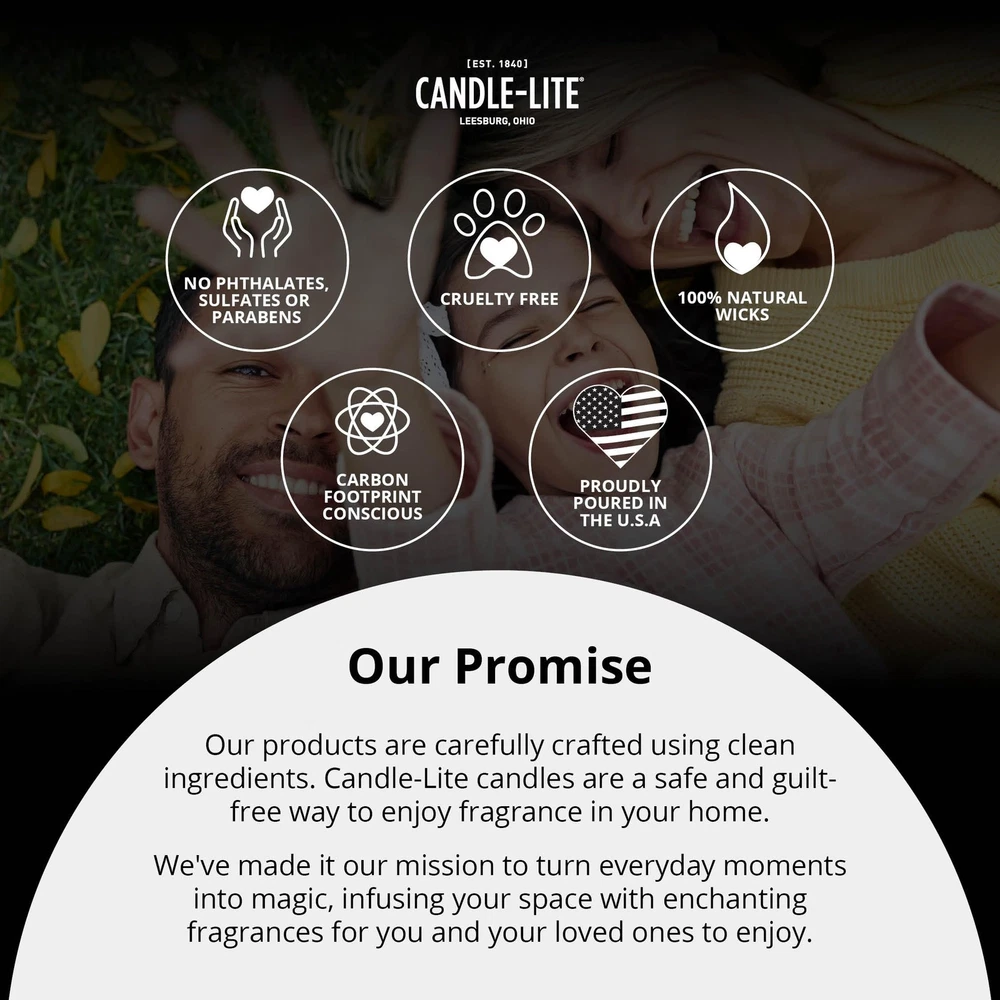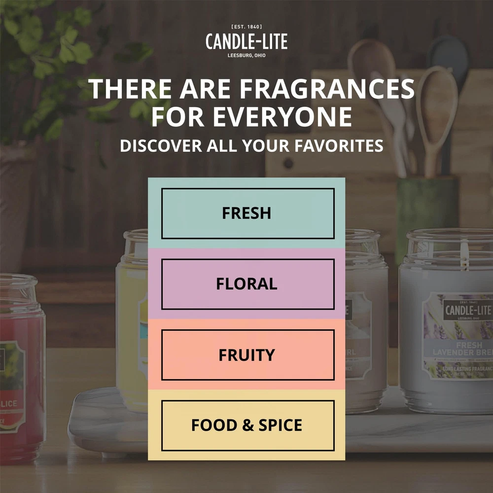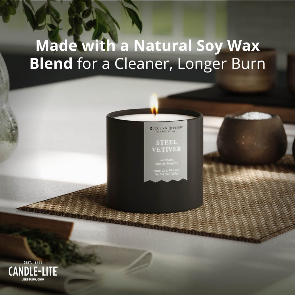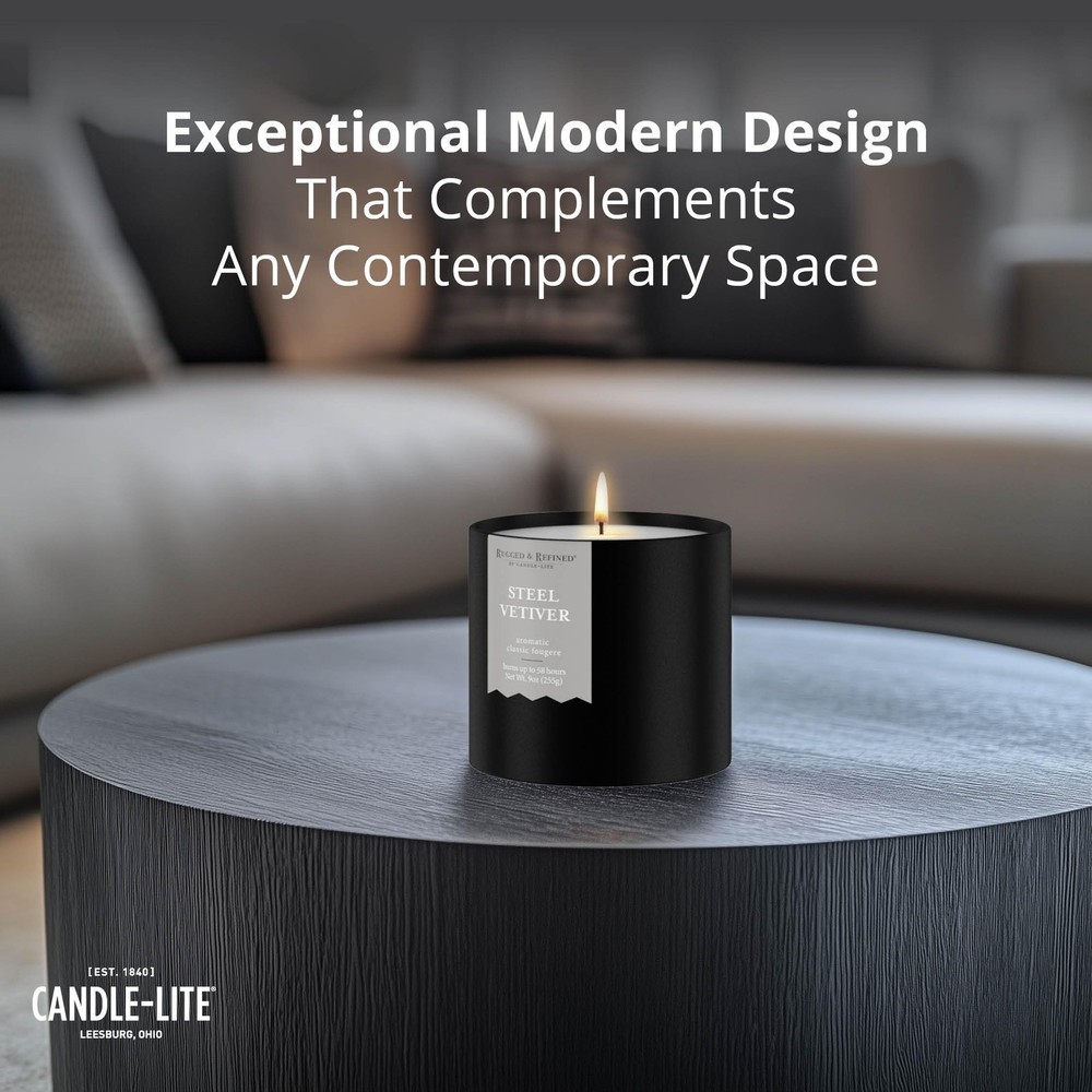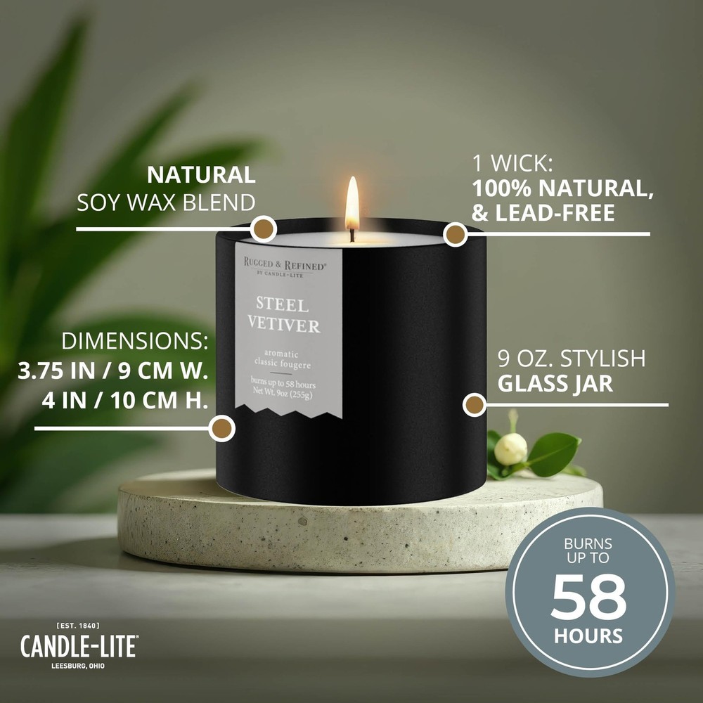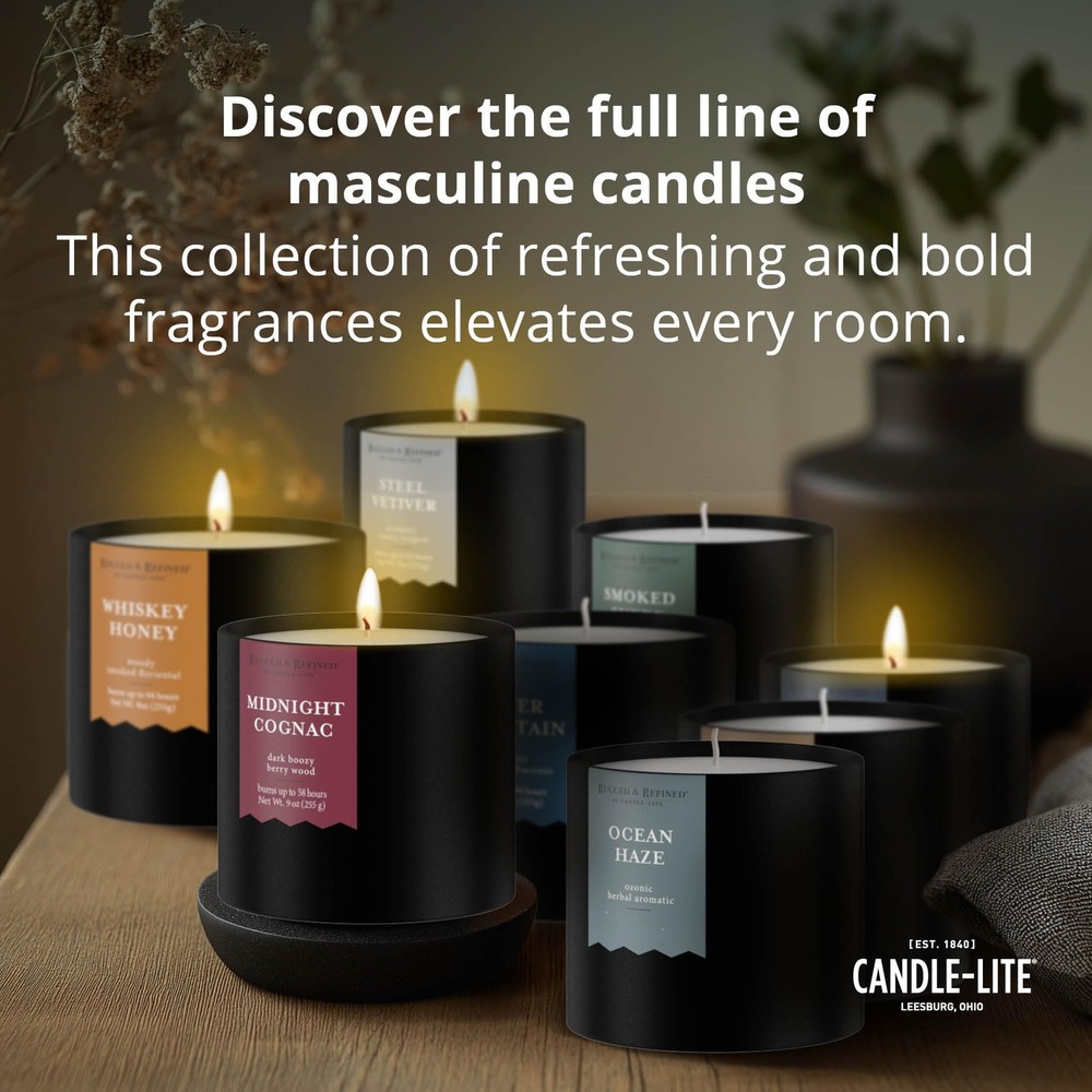 SCENTED CANDLE FOR MEN – A masculine blend of cool ozone and fresh mint, layered with sandalwood, amber, and pine. Soft notes of muguet, lavender, and apple add balance, creating a crisp, sophisticated scent with refreshing depth. HIGH-QUALITY INGREDIENTS - Each candle features a premium soy wax blend for a long-lasting, strong scent throw and burn time. The white natural wax blend is safe and and complements any décor. SINGLE-WICK CANDLE – This candle features one 100% cotton wick and maintains a consistent burn up to 58 hours. RESPONSIBLY MADE – Carefully crafted using clean ingredients. No parabens, sulfates, phthalates, or animal testing. Made with a commitment to reducing our carbon footprint and contributing to a more compassionate, sustainable world. TRUSTED QUALITY – Lighting America’s hearts and homes since 1840, Candle-lite Company has been crafting quality candles in Ohio’s heartland for over 180 years. Poured in the USA. Whether it's floral, fresh, fruity or gourmand, we have a fragrance for you. FITS YOUR DECOR – This 9 oz. candle comes in a sleek, black minimalist tin, ideal for any room, whether it’s your home office, living room, man cave or bedroom. Enjoy its crisp fragrance during game nights, movie nights, or while working from home. IDEAL GIFT FOR MEN – Whether for Father's day, birthdays, anniversaries, housewarmings or holidays, this sleek scented candle makes a great gift. Its rich aroma and elegant design suit both men and women and enhance any home or bedroom decor.