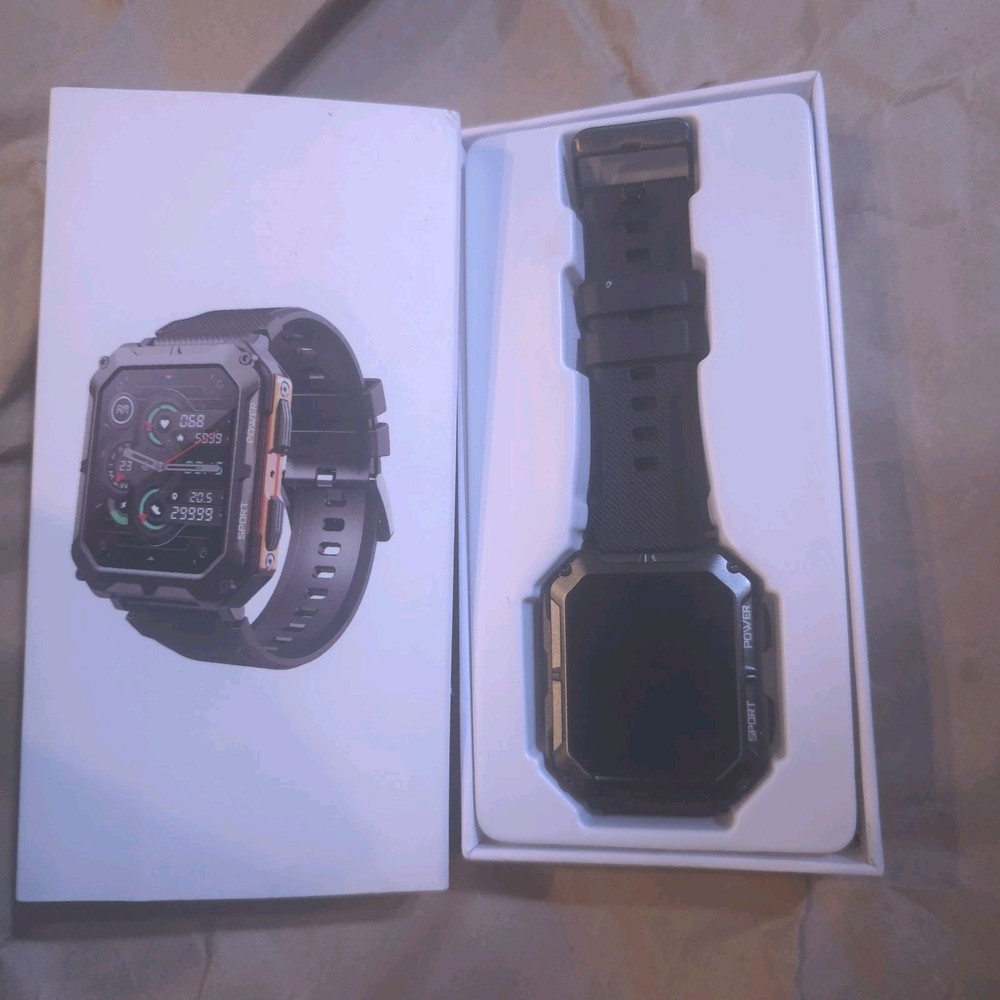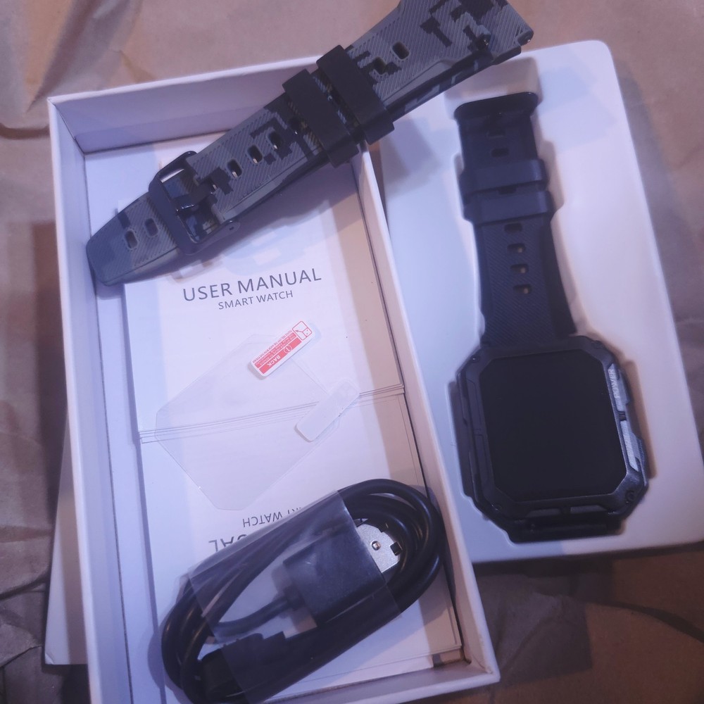 This is a brand new, rugged C20 Pro series smartwatch, perfect for outdoor enthusiasts, sports lovers, and anyone needing a durable, reliable fitness tracker. It comes complete with two strap options and its original charging cable and manual. ●Key Features (Based on Box Images) Durable Design: Built for tough conditions (implied by the rugged style and "C20 Pro" naming often associated with durability). ●Fitness Tracking: The screen display on like Heart Rate , Steps , Distance , and Calories ●Dual Strap Included: Comes with the black, textured sport band attached, plus an extra camouflage/military green band (visible in the box). ●Power & Sport Buttons: Features clearly marked "SPORT" and "POWER" buttons on the side of the watch. ●Complete Package: Includes the smart watch, user manual, charging cable, and second strap.