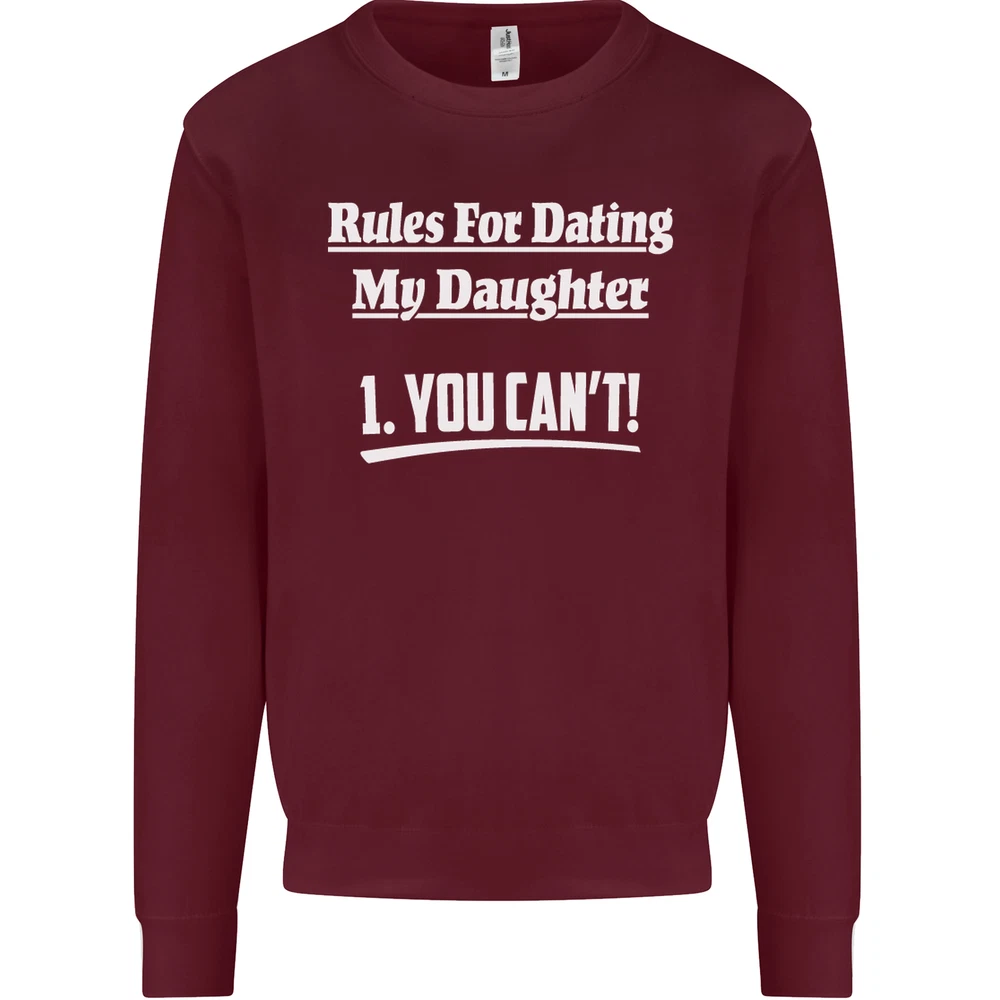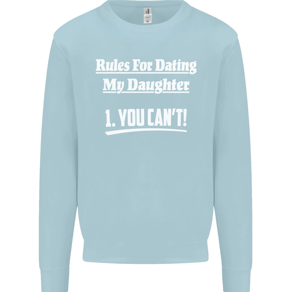 Rules for Dating My Daughter Fathers Day Mens Sweatshirt Jumper Sizes: S 36" M 40" L 44" XL 48" 2XL 52" 3XL 56" 4XL 60" 5XL 64" Professionally printed onto an adults AWDis Sweatshirt (Sweat) JH030N 280gsm Unisex Twin needle stitching detailing Ribbed cuff and hem Soft cotton faced fabric creates ideal printing surface Printed with eco-friendly inks that are safe to the skin and children Worldwide Responsible Accredited Production (WRAP) certified production Training shoe with low-to-the-ground feel. Upper: Welded-TPU support overlays in the heel, toe cap and quarter. Dual mesh provides closed mesh in the lower quarter and breathable mesh throughout. Texture screened toe cap for protection. Description & Size Chart Adults AWDis Sweatshirt (Sweat) JH030 280gsm Unisex Twin needle stitching detailing Ribbed cuff and hem Soft cotton faced fabric creates ideal printing surface Worldwide Responsible Accredited Production (WRAP) certified production Printed with eco-friendly ink, which are safe to the skin and children. Alternative Styles This design (where appropriate), and many more like it, are available on the following styles: Best Selling Collections On the Darkside Birthdays Pets \ Animals Gym & Fitness Father's Day Sport Funny Biker Special Occasions Martial Arts LGBT Christmas Shipping All orders are shipped within one working day. Due to circumstances out or our control, or busy times of the year, this could be extended to two working days. Returns Returns are accepted within 60 days of delivery providing that the item is returned in the original condition and all tags are intact (where applicable) and has not been worn. Please ensure that the item is returned clean and free of pet hair. To return an item please use eBay's return system, which can be located by finding your order in your account and selecting the return option. eBay integration by