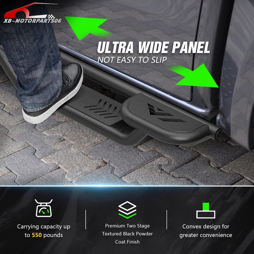 Running Boards For 2009-2018 Ram 1500 & 2010-2026 Ram 2500&3500 Crew Cab Suitable Models : Compatible with 2009-2018 Dodge Ram 1500 Crew Cab, 2019-2024 Ram 1500 Classic, 2010-2026 Ram 2500 & 3500 Crew Cab (4 Full-Size Doors) Package Includes : 2 x Running Boards Side Steps, brackets, instructions, and all necessary hardware Product Information : Product Dimensions: 80 x 11 x 9 inches Installation mode: Bolt-On Weight Limit: 550LBS Placement on Vehicle: Left and Right Item Weight: 79.77 pounds Material: Carbon Steel Color: Black (hand measurements may have an error of 2-3 mm/0.078-0.118 in) Feature: ① Three Raised Steps for easy access to the roof, allowing multiple users to work on the vehicle simultaneously; ② Dual-layer Layout provides enhanced convenience for vehicles equipped with lift kits and oversized tires, offering easier access to the roof while maintaining sufficient ground clearance; ③ The high-quality black powder coating provides outstanding rust and corrosion resistance. Constructed from heavy-duty 2mm carbon steel, each side can withstand a weight of 550 pounds. Precision laser cutting and stamping techniques contribute to a non-slip step surface and enhanced traction; Warranty Period : 2 year Standard Shipping (FedEx Ground or FedEx Home Delivery) Will usually ship within 3 business days of receiving cleared payment Suitable Models : Compatible with 2009-2018 Dodge Ram 1500 Crew Cab, 2019-2024 Ram 1500 Classic, 2010-2026 Ram 2500 & 3500 Crew Cab (4 Full-Size Doors) Package Includes : 2 x Running Boards Side Steps, brackets, instructions, and all necessary hardware Product Information : Product Dimensions: 80 x 11 x 9 inches Installation mode: Bolt-On Weight Limit: 550LBS Placement on Vehicle: Left and Right Item Weight: 79.77 pounds Material: Carbon Steel Color: Black (hand measurements may have an error of 2-3 mm/0.078-0.118 in) Feature: ① Three Raised Steps for easy access to the roof, allowing multiple users to work on the vehicle simultaneously; ② Dual-layer Layout provides enhanced convenience for vehicles equipped with lift kits and oversized tires, offering easier access to the roof while maintaining sufficient ground clearance; ③ The high-quality black powder coating provides outstanding rust and corrosion resistance. Constructed from heavy-duty 2mm carbon steel, each side can withstand a weight of 550 pounds. Precision laser cutting and stamping techniques contribute to a non-slip step surface and enhanced traction; Warranty Period : 2 year