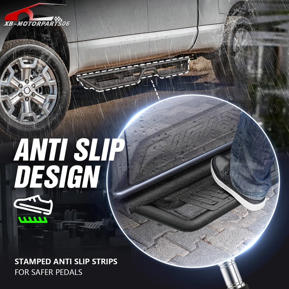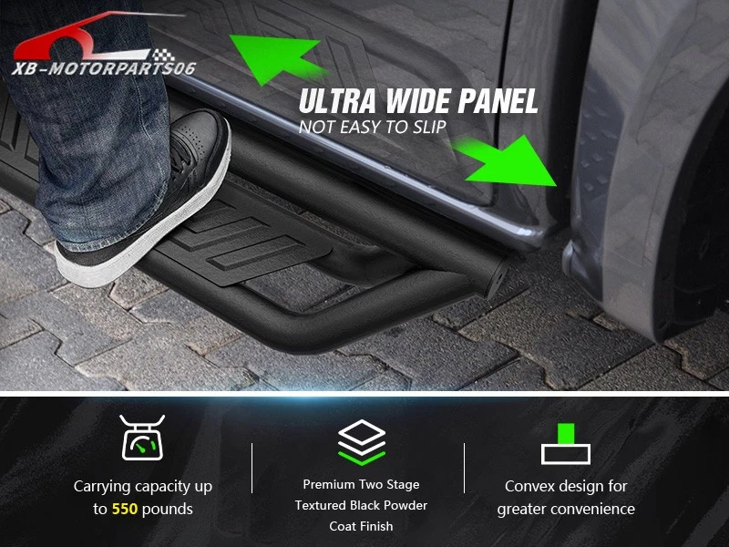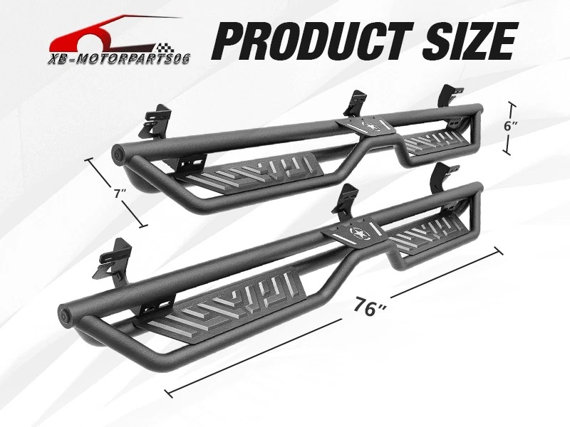 Running Boards Side Steps For 2004-2025 Nissan Titan &Titan XD 2016-2025 CrewCab Suitable Models : Compatible with 2004-2025 Nissan Titan (Excludes 2016 Model) & Nissan Titan XD 2016-2025 Model Crew Cab Package Includes : 2 x Running Boards Side Steps, brackets, instructions, and all necessary hardware Product Information : Product Dimensions: 83 x 7 x 6 inches Installation mode: Bolt-On Weight Limit: 550LBS Placement on Vehicle: Left and Right Item Weight: 69.96 pounds Material: Carbon Steel Color: Black (hand measurements may have an error of 2-3 mm/0.078-0.118 in) Feature: ① The side steps feature a dual-layer design, enhancing convenience for vehicles with lift kits and oversized tires, while also making roof access easier; ② The extra-thick main tube provides superior load-bearing capacity, preventing deformation and enhancing vehicle protection; ③ The stepping area is designed with a high-end textured pattern, ensuring secure and stable footing to prevent slipping; ④ The high-quality black powder coating provides outstanding rust and corrosion resistance. Constructed from heavy-duty 2mm carbon steel, each side can withstand a weight of 550 pounds. Precision laser cutting and stamping techniques contribute to a non-slip step surface and enhanced traction; Warranty Period : 2 year Standard Shipping (FedEx Ground or FedEx Home Delivery) Will usually ship within 3 business days of receiving cleared payment Suitable Models : Compatible with 2004-2025 Nissan Titan (Excludes 2016 Model) & Nissan Titan XD 2016-2025 Model Crew Cab Package Includes : 2 x Running Boards Side Steps, brackets, instructions, and all necessary hardware Product Information : Product Dimensions: 83 x 7 x 6 inches Installation mode: Bolt-On Weight Limit: 550LBS Placement on Vehicle: Left and Right Item Weight: 69.96 pounds Material: Carbon Steel Color: Black (hand measurements may have an error of 2-3 mm/0.078-0.118 in) Feature: ① The side steps feature a dual-layer design, enhancing convenience for vehicles with lift kits and oversized tires, while also making roof access easier; ② The extra-thick main tube provides superior load-bearing capacity, preventing deformation and enhancing vehicle protection; ③ The stepping area is designed with a high-end textured pattern, ensuring secure and stable footing to prevent slipping; ④ The high-quality black powder coating provides outstanding rust and corrosion resistance. Constructed from heavy-duty 2mm carbon steel, each side can withstand a weight of 550 pounds. Precision laser cutting and stamping techniques contribute to a non-slip step surface and enhanced traction; Warranty Period : 2 year