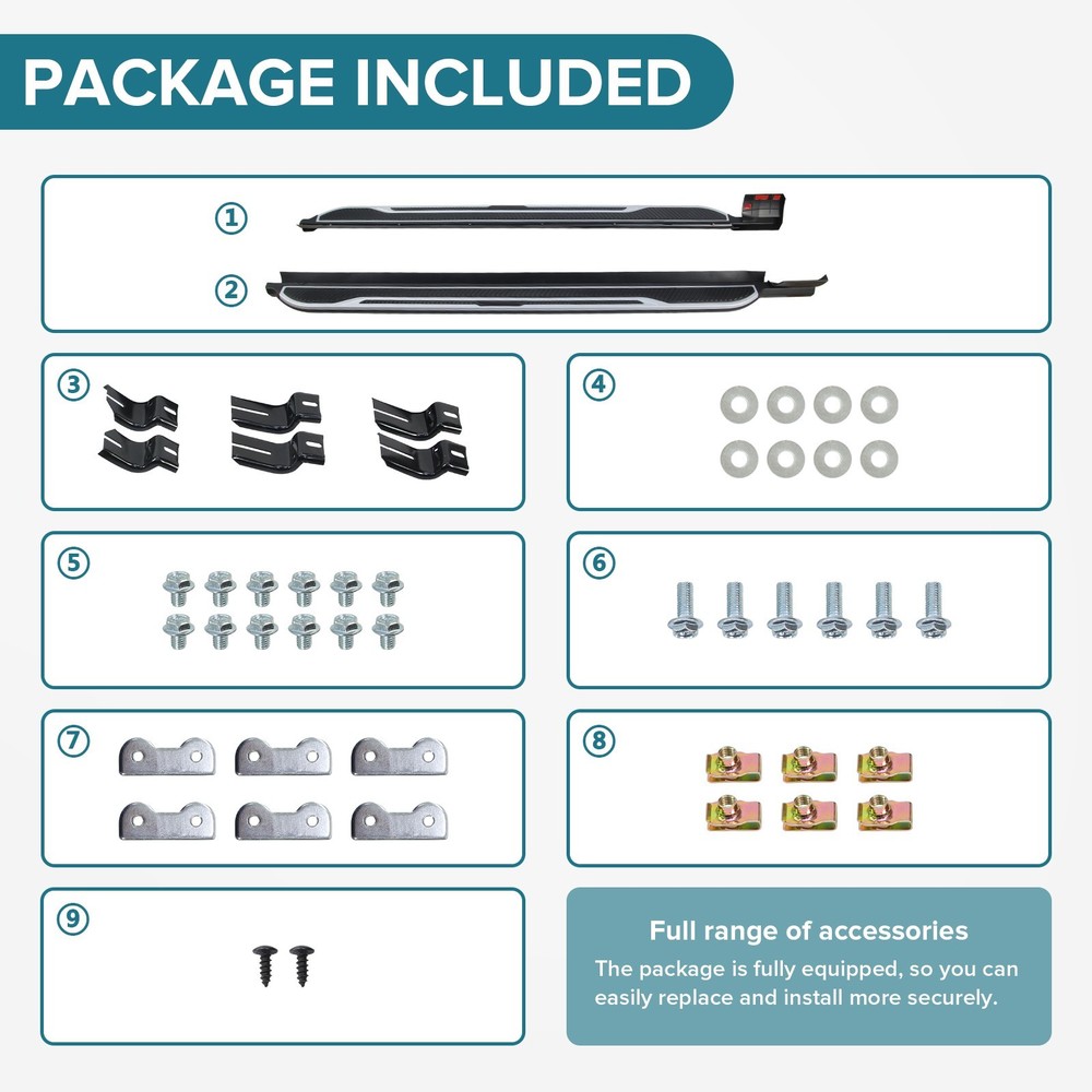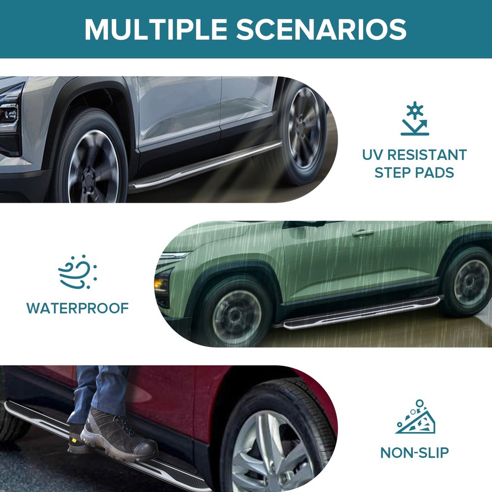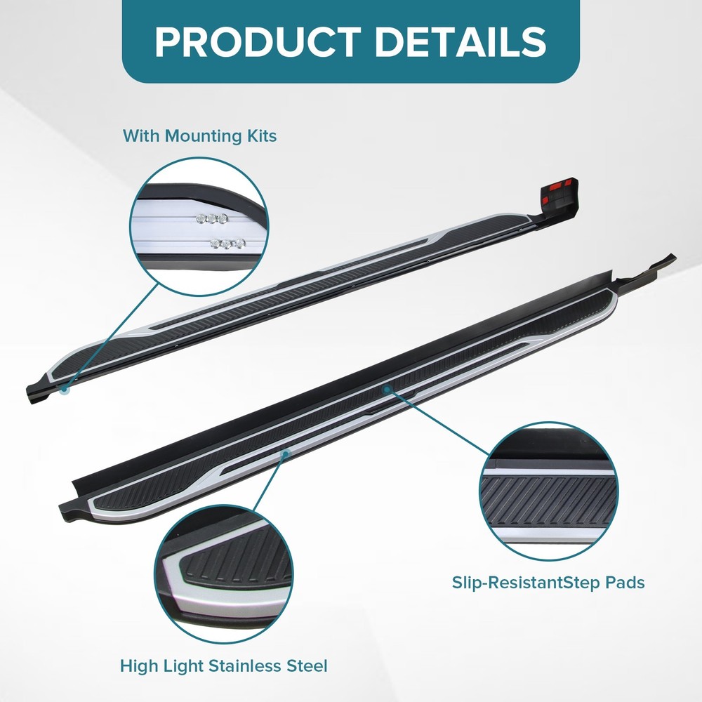Specification Type: Running Board Material: Aluminum, Plastic Placement on Vehicle: Left, Right Make: For Ford Explorer Year: 2020-2025 Feature Note: 300 LBS Color: Black,Aluminum Weight (LB): 30.8 Length(IN): 74.8 Width(IN): 9.64 Height (IN): 6 Installation Instructions: Not Included 1. Optimal Placement – Mounted beneath the vehicle chassis, between the front and rear wheels, for easy step-in/step-out access. 2. Durable & Weatherproof – Resistant to rust, scratches, and harsh weather conditions, ensuring long-lasting protection for your vehicle. 3. Quick Installation & Removal – Hassle-free setup and detachable design for flexible use whenever needed.