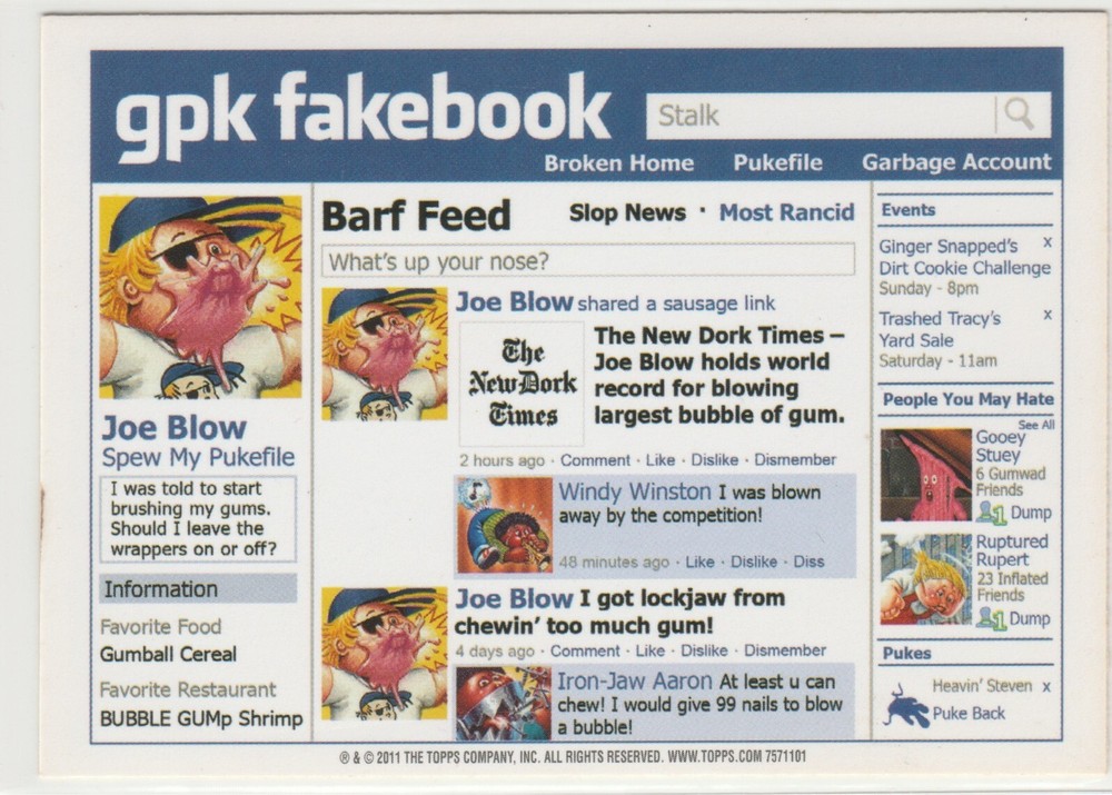 $ 3.17Garbage Pail Kids GPK 2011 Flashback Series 3 FB3 Chow Mame #63b Card