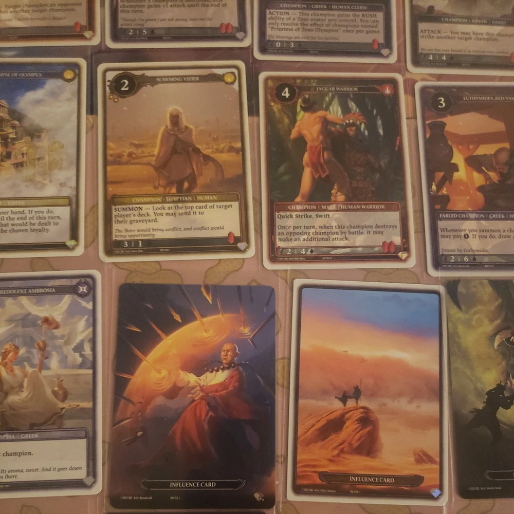 Lot of 50 assorted Rush of Ikorr cards. No duplicates. Never played,, immediately sleeved.. Judge for yourself. Shipped safe and secure. Ask for additional questions or for any details. Card lot will consist of 20 influence cards and 30 assorted non influence cards. Ask for more details. The Rush of Ikorr Holo Foil Influence Card Collection Lot of 50 cards is a sought-after set of collectible cards from the Rush of Ikorr game. Manufactured by Upper Deck, these English-language cards feature a foil finish, adding a unique touch to your collection. With no duplicates included, this lot offers a valuable addition for any CCG enthusiast looking to expand their collection with a mix of standard-sized cards.
