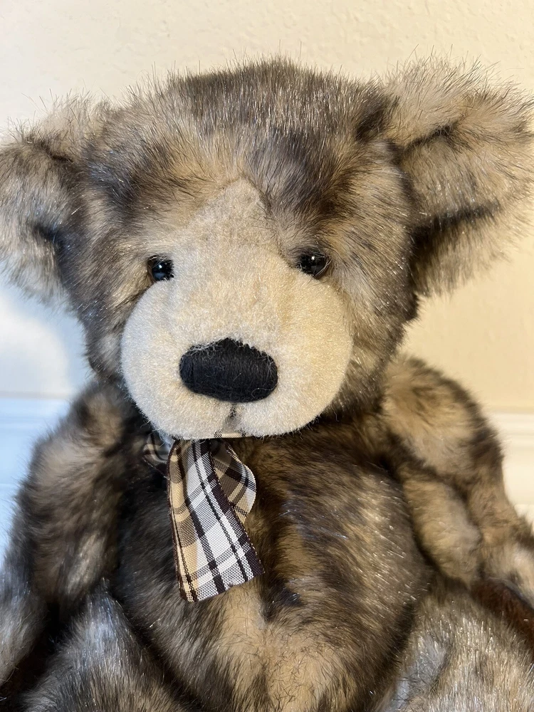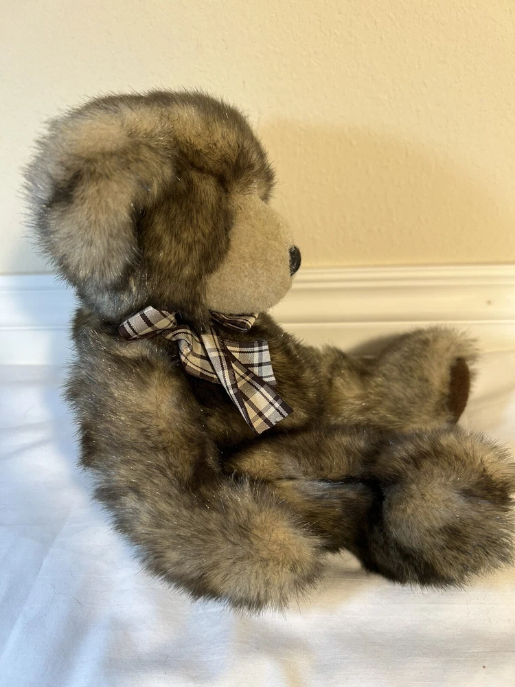 Russ Berrie Plush Bear 13" Capuccino Frosted Brown Bow Bears From The Past Teddy Pre-owned with no hang tags. He has damage to one paw. Please see photos. Upcl