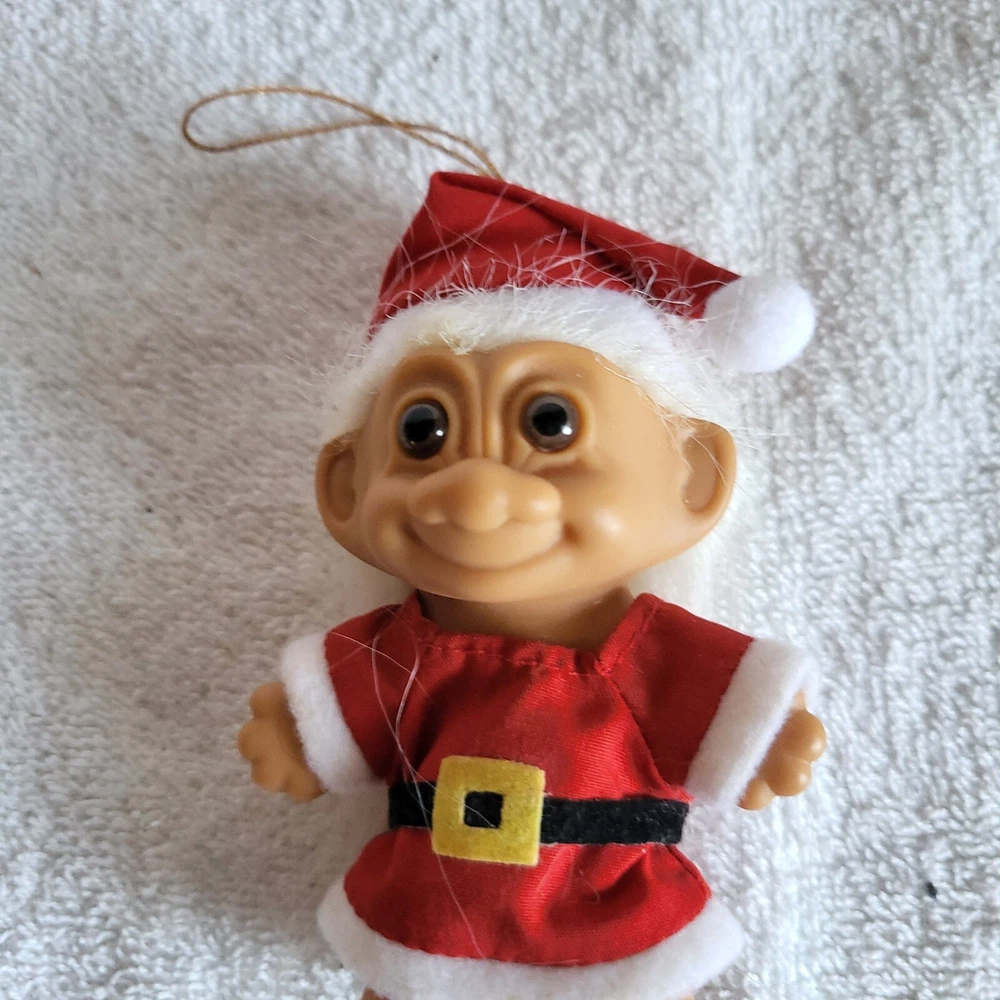 Bring home the magic of Christmas with this adorable 4-inch Russ Berrie Santa Claus Troll doll. The doll features a straight white hair and brown eyes, and comes in a vintage Santa suit with a baby Berry design. Perfect for collectors or as a gift for children of all ages, this retired doll is made of high-quality vinyl and has a medium complexion. Celebrate the holidays in style with this one-of-a-kind Troll doll, part of the Russ Berrie franchise. Whether you're adding it to your collection or giving it to a loved one, this doll is sure to bring joy and joyful memories. Don't miss out on this unique and charming piece!