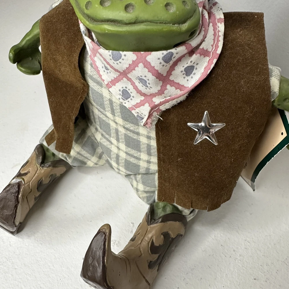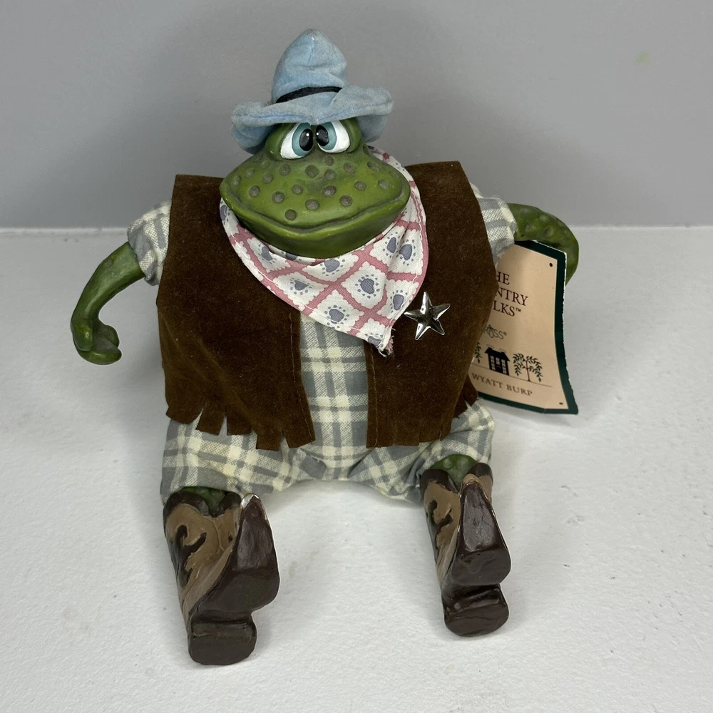 This Russ Berrie collectible features Wyatt Burp, the beloved frog, painted in vivid detail on resin. The sculpture stands at 5 inches tall and is a part of the Kathleen Kelly Critter Factory collection. It is a perfect addition to any collection of Russ figurines or western memorabilia. See photos for condition details. Shipping: All items are packed with care. I do use recycled packing and shipping materials whenever possible. If you have any issues with your purchase, please reach out as soon as possible. Thank you for your business!