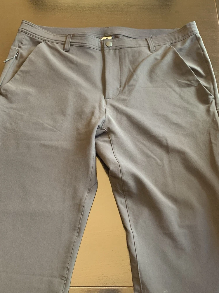 ***2nd and last photo shows the true color of this item, the pants are Black, not charcoal, the material of the pants with the lighting changes the color in the photos*** **Pre Owned, no odors, pet and smoke free home** *Pants have some marks on them from wear and tear please see all photos to see the overall condition of these pants* The Russell Athletic Tech Pants in size L are designed for outdoor activities, featuring a solid green color and a durable cotton blend material with microfiber fabric type. These jogger-style pants have a zip closure and multiple pockets for convenience. The water-resistant design makes them suitable for various sports like tennis, soccer, hiking, and more. With a regular fit and machine washable care instructions, these versatile activewear pants offer both style and functionality for active men on the go.