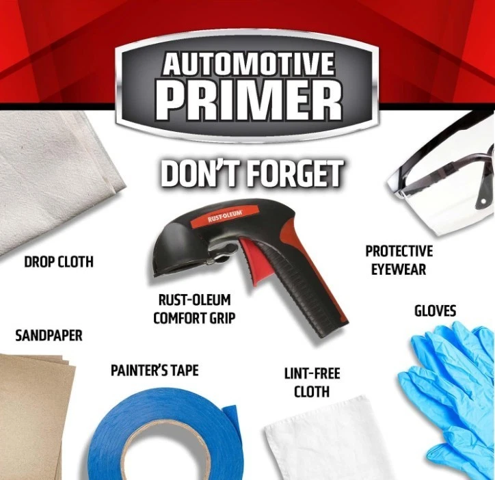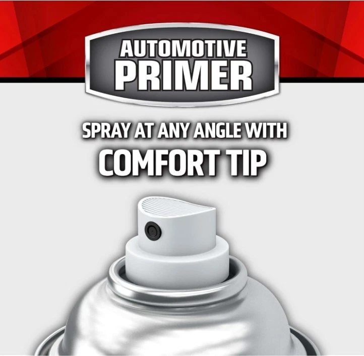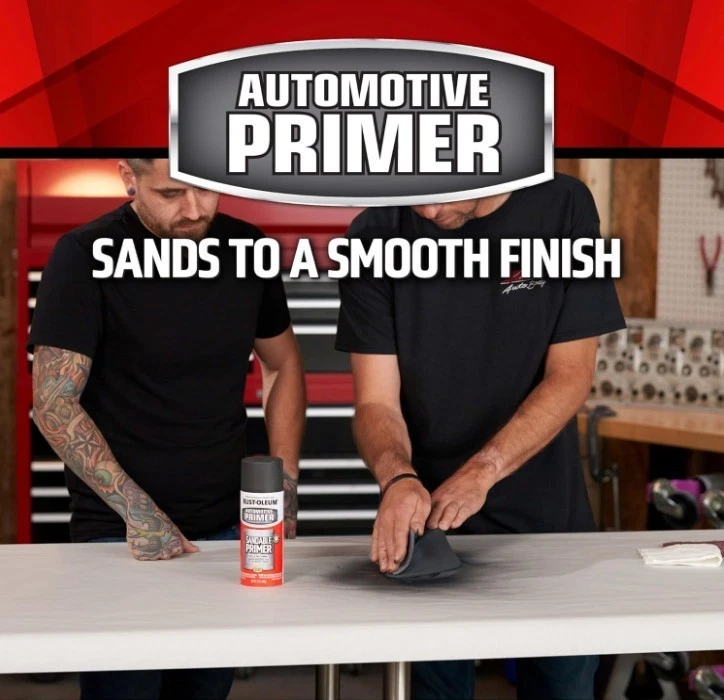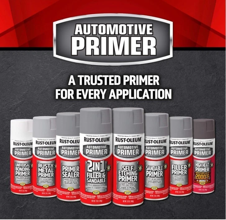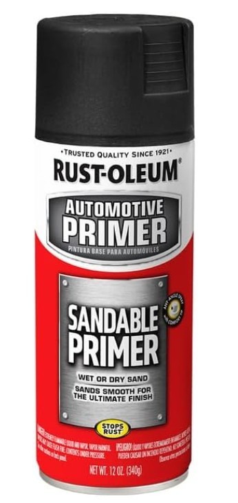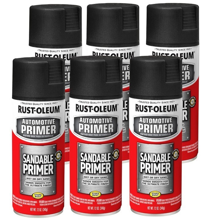 Rust-Oleum 249418-6PK Automotive Sandable Primer Spray, 12 oz, Black, 6 Pack Product Description Rust-Oleum Automotive Sandable Primer Spray adheres to bare metal and creates a reliable base coat ready for sanding and topcoat application. The any-angle spray can with ergonomic comfort tip allows spraying in all directions, even upside down, while reducing hand fatigue during extended use. Best applied outdoors or in a well-ventilated space, such as an open garage. This wet and dry sandable primer works on wood, metal, and fiberglass surfaces. Its oil-based Stops Rust formula provides a rust-resistant base for cars, trucks, and other vehicles. Each 12 oz can covers up to 15 sq. ft. and dries to the touch within 10 minutes, allowing for quick recoating. High-quality spray paint ensures a durable, long-lasting finish, while its formulation promotes excellent topcoat adhesion. Sanding the primer results in a smooth, even surface, providing a professional-looking flat finish for your painting projects.