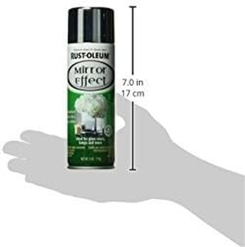 Ideal for use on glass vases, jars, framed glass, table tops, candle holders and more Oil-based formula provides a shiny, reflective, durable and long lasting finish Dries in 10 minutes and covers up to 4 sq. ft. Spray on the reverse side or opposite side of ordinary glass and acrylic glass surfaces Glossy finish provides a mirror-like look to any glass or acrylic glass item Product Description Rust-Oleum Specialty Mirror Effect Spray makes it easy to transform glass and acrylic glass into a reflective mirror-like surface. Unique, slender can allows for easy handling. Simple, one step application dries quickly right before your eyes and provides superior durability. Ideal for glass vases, candle holders, framed glass, jars and tabletops. From the Manufacturer Mirror Effect Spray makes it easy to transform glass and acrylic glass into a reflective mirror-like surface. Unique, slender can allows for easy handling. Simple, one step application dries quickly right before your eyes and provides superior durability. Ideal for glass vases, candle holders, framed glass, jars and tabletops!