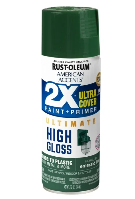 Rust-Oleum American Accents 2X Ultra Cover Spray Paint - 12oz, 40+ Colors Available Premium Quality Coverage with Advanced Technology This professional-grade Rust-Oleum American Accents 2X Ultra Cover Gloss Spray Paint (Model #327864) delivers exceptional results for both DIY enthusiasts and professionals. Engineered with innovative Double Cover Technology, this 12 oz spray paint provides superior hiding power and coverage in a single application, significantly reducing project completion time. Key Features & Benefits: Versatile Application - Suitable for interior and exterior use on wood, metal, plastic, and various other surfaces Double Cover Technology - Delivers twice the coverage of standard spray paint in one pass, maximizing efficiency Quick-Drying Formula - Dries to touch in just 20 minutes for rapid project turnaround 2-in-1 Solution - Oil-based paint and primer combination provides enhanced protection and durability Premium Gloss Finish - Creates a lustrous, smooth surface with professional-grade appearance Ergonomic Design - Specialty comfort tip reduces hand fatigue during extended use 360° Spray Technology - Advanced nozzle allows spraying from any angle, including inverted positions for hard-to-reach areas Generous Coverage - Covers up to 12 square feet per can Ideal For: Home improvement projects, furniture restoration, automotive touch-ups, crafts, and professional applications requiring durable, high-quality finish. This premium spray paint combines convenience, performance, and professional results in one reliable product
