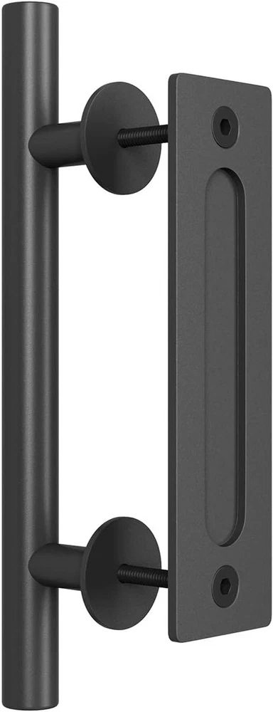 Easy to Install: The SMARTSTANDARD Heavy Duty Barn Door Handle Set comes with all the necessary hardware for a straightforward installation on your door. Simply drill two holes to securely attach the handle and finger pull using the provided screws. Finger Pull Size: Dimensions for the finger pull are L 8 5/8 inches x W 2 5/16 inches x H 1/4 inches (depth 1/4 inch). The pull handle measures L 12 inches with a diameter of 1 inch. Versatile Door Panel Compatibility: This handle set is designed for door panels with thicknesses of 3/4 inch to 1-3/4 inches. For thicker doors, longer screws can be purchased separately. If the handle pillar becomes loose or requires removal, a small wrench is included for easy tightening. Wide Application: Ideal for both interior and exterior doors, this handle set can be mounted on a variety of materials including wood, glass, and aluminum. It is suitable for use on doors, gates, garages, barns, sheds, closets, and sliding doors, making it a versatile addition to your home. Package Includes: The set includes 1 finger pull, 1 pull handle, 2 screws (length: 2 3/8 inches), 2 pads (diameter: 1 3/4 inches, thickness: 7/32 inches), and 2 wrenches. Please note that only the hardware is included; the door is not part of the package. Product Description Durable Black Finish The black finish of this handle set is achieved through a burnishing process that provides exceptional corrosion resistance. This protective coating not only enhances the aesthetic appeal but also ensures long-lasting durability, making it an ideal choice for various environments. Enhanced Safety and Security Crafted from high-quality carbon steel, this handle set is designed with both security and durability in mind. The edges are meticulously polished to prevent hand injuries, ensuring that you can use the handle safely and comfortably.
