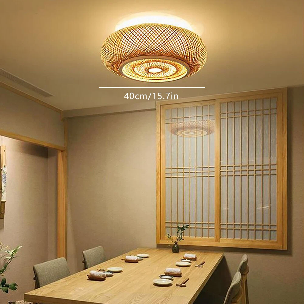Rustic Bamboo Ceiling Light Art Pendant Lamp Drum Shape Wicker Rattan Fixture US