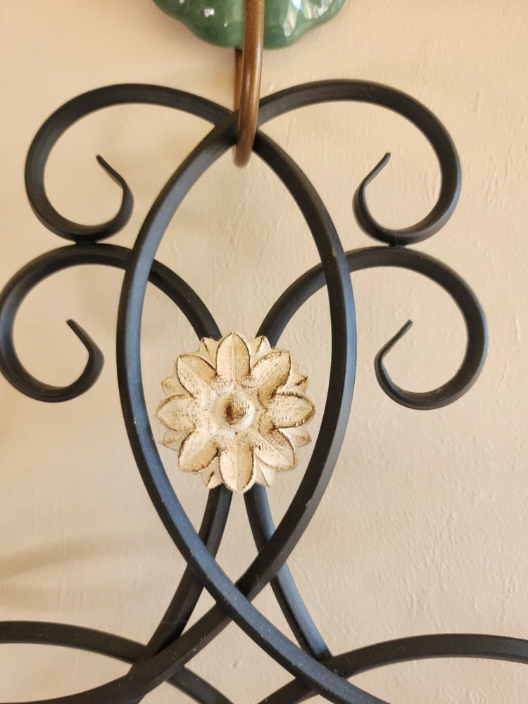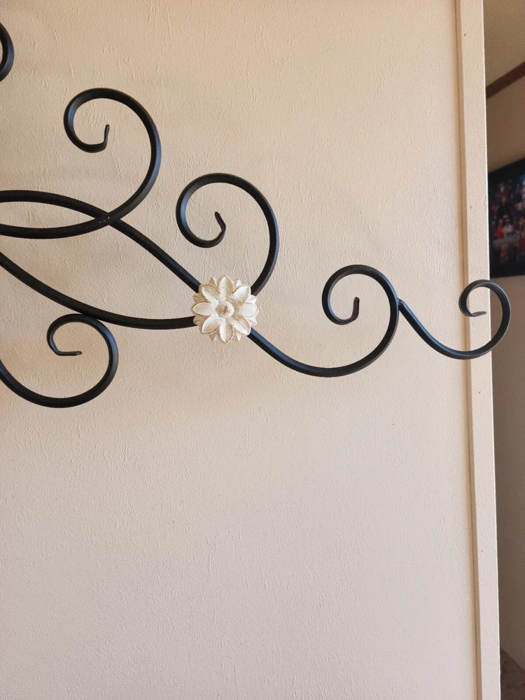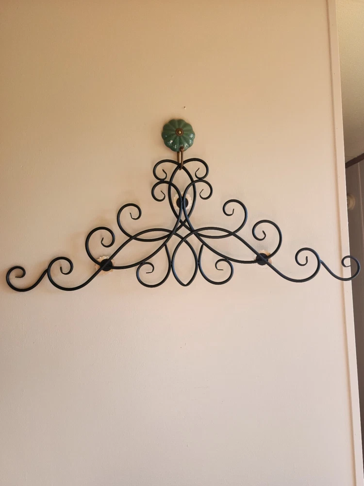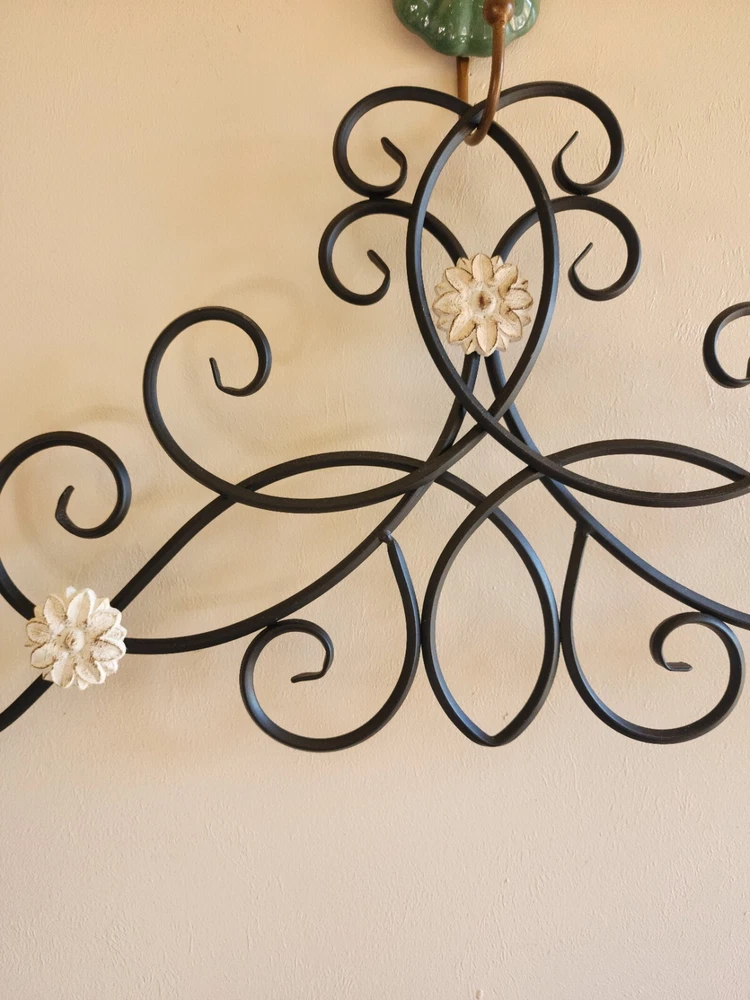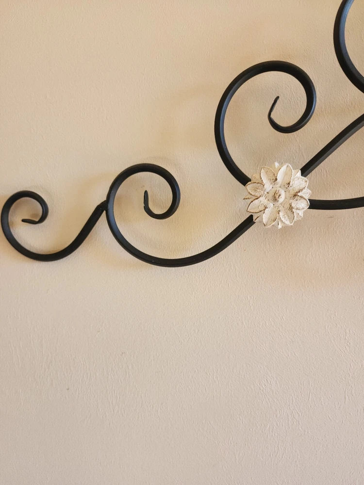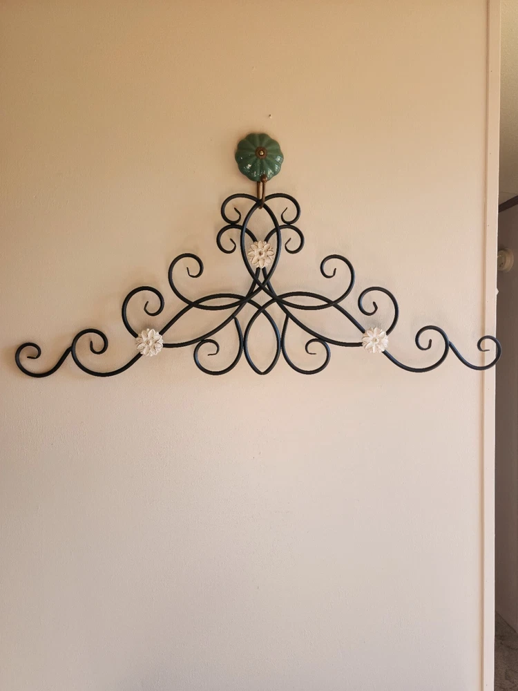 Care Instructions:Clean with Damp ClothHandmade:NoType:scrollShape:FlowerCharacter:unknownRoom:Any RoomEngraved:NoTheme:FlowersItem Length:33.5 inFeatures:Hanging, Indoor, Metal BaseCharacter Family:unknownPattern:all overItem Width:12.5 inStyle:Rustic/PrimitiveOrientation:VerticalMounting:HangingFinish:MetallicMaterial:Metal, WoodColor:BlackPersonalize:NoSubject:Abstract ArtVintage:NoSize:Extra LargeCustomized:NoCountry/Region of Manufacture:UnknownBrand:UnbrandedDepartment:Kids, Teens, AdultsModel:unknownAdditional Parts Required:NoBattery Type:none