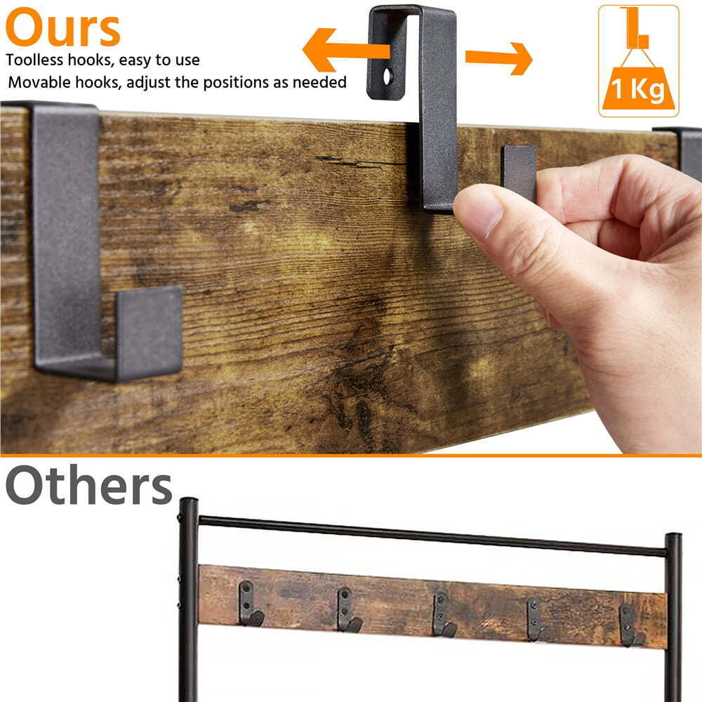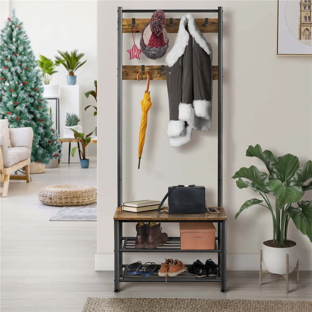 You may also like Soft Turf 13X5.00-6 4-Ply Lawn & Garden Tire Riding Mowers & Utility Equipment 16.46 USD 17.33 USD Free shipping 5% off Portable Black File Organizer Box W/ 5 Hanging Folders Letter Size Side Handle 5.9 USD 6.21 USD Free shipping 5% off 10 Gallon Glass Fish Tank Aquariums Double Transparent Glass Rectangle Black 28.18 USD 29.66 USD Free shipping 5% off Quick Rolled Oats Emergency Food Storage 10 Lb Pail Nutrient-Dense Dry Mixes New 23.23 USD 24.45 USD Free shipping 5% off Lawn & Garden Tire 13x6.50-6 All Season 4-Ply Bias Ply Terrain Versatility New 29.32 USD 30.86 USD Free shipping 5% off 4.5 Qt. Crockpot Slow Cooker Black Hinged Lid One-Touch Control Auto Warm New 43.86 USD 46.17 USD Free shipping 5% off Floating Koi Fish Food Pellets 10 Lb Bag All Seasons Pond Formula Koi/Goldfish 43.99 USD 46.3 USD Free shipping 5% off Medium Stackable Storage Drawer 19.75" X 15.5" Durable Resin Clear Front Offices 23.01 USD 24.22 USD Free shipping 5% off Paper Hot Cups 10 oz poly lined help resist heat prevent leaks White 1000/Carton 53.96 USD 56.8 USD Free shipping 5% off 50ft RV Boat Drinking Water Hose 0.5-in Inside Diameter PVC White Lead-Free New 23.11 USD 24.33 USD Free shipping 5% off Replicating 31 In Hardside Expandable Checked Spinner Luggage Shippable Fashion 102.75 USD 108.16 USD Free shipping 5% off Toilet Paper Septic Safe Individually Wrapped Rolls 2-Ply White 500 Sheets/Roll 42.78 USD 45.03 USD Free shipping 5% off This multifunctional entryway coat rack is the perfect piece for any small space or narrow foyer. This functional hall tree has 9 movable hooks for hats, coats, keys, dog leashes, etc. These 9 movable hooks can be placed anywhere on the hall tree dependent on the size of the items you are trying to hang. There are also 2 additional shoe storage shelves and 1 storage bench that provide a perfect space to change and store your shoes. The sturdy hall tree is built from high-quality materials and is guaranteed to last a long time. We have provided 2 anti-tip kits to secure the entryway coat rack to the wall. We have also provided 4 protective foot caps to place onto the base that helps prevent any damage to the floor. This simple, chic, rustic hall tree will blend in perfectly with any home decor style. Features: PERFECT CHOICE FOR SMALL PLACE: The multifunctional entryway coat rack is built in a slim size measuring 72.5cm/28.5" wide, 33cm/13" deep, and 184.5cm/73" tall. Ideal for small apartment, mudroom, and narrow foyer/entryway. 3-IN-1 ENTRYWAY ORGANIZER: From this one functional hall tree, you will get 9 movable hooks for hats, coats, keys, dog leashes, 2 additional shoe storage shelves, and 1 bench that can hold up to 125kg/275 lb. for shoe changing. SUBSTANTIAL STRUCTURE: The sturdy hall tree is constructed of baking finished metal and CARB P2-compliant manufactured wood for excellent strength, durability, and rust resistance. EASY SETUP REQUIRED: With the enclosed detailed assembly instructions, the entryway hall rack won't take you long to set up. And don't worry about not having any tool on hand, the Allen key included is there to assist. 9 MOVABLE HOOKS: The 9 metal hooks can be fixed on or slid along the boards for your most convenience and preference. Each hook is capable of holding 1kg/2lb. MADE FOR SAFETY: The hall tree bench comes with two anti-tip kits to secure it to the wall. Please make sure that the anti-tip kits are correctly mounted before use. ADJUSTABLE PROTECTIVE FEET: The four protective feet help prevent leaving scratches on the hard floor and the screw-in installation can adjust and level the hall tree to the floor. CHIC ADDITION: The matte black framework and the rustic veneer give this hall tree an industrial look and feel, and offer the charm of modern farmhouse appeal to your home. It works perfectly in the entryway, hall, foyer, mudroom, and bedroom. Specification: Color: rustic brown board, black frame Hook Qty.: 9 Material: baking finished iron, manufactured wood Overall dimension: 72.5x33x184.5cm/28.5x13x73" (L x W x H) Distance between shelves: 17cm/6.7" Bench size: 72.5x33cm/28.5x13" (L x W) Bench height: 48cm/19" Main framework tube diameter: 3.2cm/1.3" Load capacity: bench: 125kg/275 lb.; each shelf: 10kg/22 lb.; each hook: 1kg/2 lb. G.W.: 12.2 kg/26.9 lb. Note: Please allow ±1cm/0.5" errors due to the manual measurements. Please do not overload the hooks to avoid the hall tree from tipping over. You may also like Luxuriously Soft Flannel Like Fleece Blanket Stylish Imprinted Floral Motif Gray 50.58 USD 53.24 USD Free shipping 5% off Life Protection Formula Natural Adult Dry Dog Food Chicken Brown Rice 15 Lb New 42.47 USD 44.7 USD Free shipping 5% off Deluxe Fondue Maker W/ Temperature Control Forks Cups Rack Stainless Steel New 52.62 USD 55.39 USD Free shipping 5% off 2 Tiers Wooden Raised Garden Bed Elevated Planter Box Indoor/Outdoor Natural New 65.51 USD 68.96 USD Free shipping 5% off Performance Clothes Cord Reel Iron Steamers Professional Automatic Shutoff 1725W 61.24 USD 64.46 USD Free shipping 5% off Professional Makeup Case 4 Retractable Trays 1 Drawer Black Security Durable New 71.01 USD Free shipping Wooden Bathroom Floor Cabinet Adjustable 5-Tier Bathroom Living Kitchen Entryway 78.87 USD 83.02 USD Free shipping 5% off CD AM/FM Clock Radio W/ 1.2 In Display & Dual Alarm Sleep Timer Dimmer Control 53.28 USD 56.08 USD Free shipping 5% off Festival Dinnerware Assorted Colors Set 12 Attractive Dual Tone Design 16.5 Lbs 48.0 USD 50.53 USD Free shipping 5% off 30 Piece Roller Hairsetter Nano Titanium Dual Ionic Ports 2 Temperature Settings 109.24 USD Free shipping 52 In Bronze Coastal Ceiling Fan 5 Reversible Blade 3 LED Bulbs Adjustable Speed 81.84 USD 86.15 USD Free shipping 5% off 16 Qt Ice Chest Cooler W/Wheels Molded Side Handles Easy Loading/Unloading Blue 30.44 USD 32.04 USD Free shipping 5% off