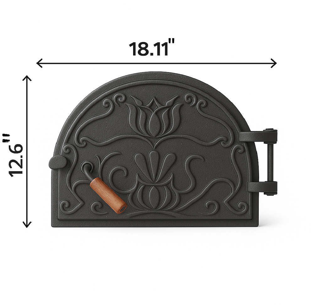✅ Description Upgrade your wood-fired oven with this carved cast iron door , designed for both functionality and aesthetics. With its elegant carved pattern and matte black finish, this oven door not only withstands extreme temperatures but also adds a traditional touch to your outdoor cooking area. Perfect for BBQ enthusiasts and wood-fired oven setups, it offers durability, heat resistance, and style in one piece. Specifications: Material: Cast Iron Color: Black Heating Method: Conduction Fuel Type: Wood / Charcoal Dimensions: 18.11" W x 12.6" H ✅ Highlights Elegant carved cast iron oven door for wood-fired ovens Heavy-duty design ensures long-lasting durability Withstands high temperatures for perfect cooking results Adds rustic style to your outdoor cooking setup Size: 18.11" W x 12.6" H | Matte black finish