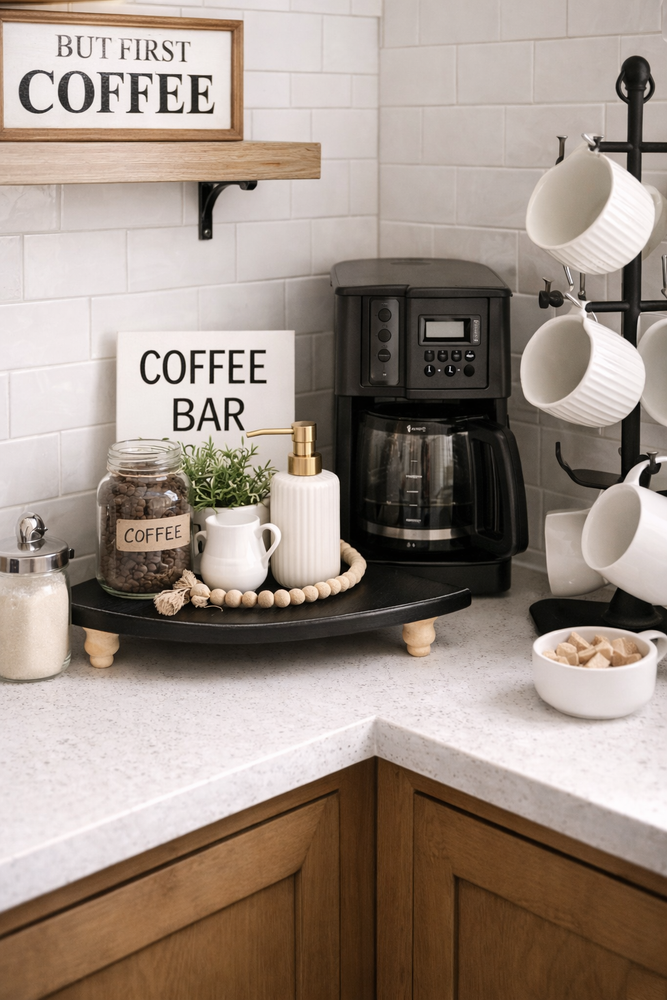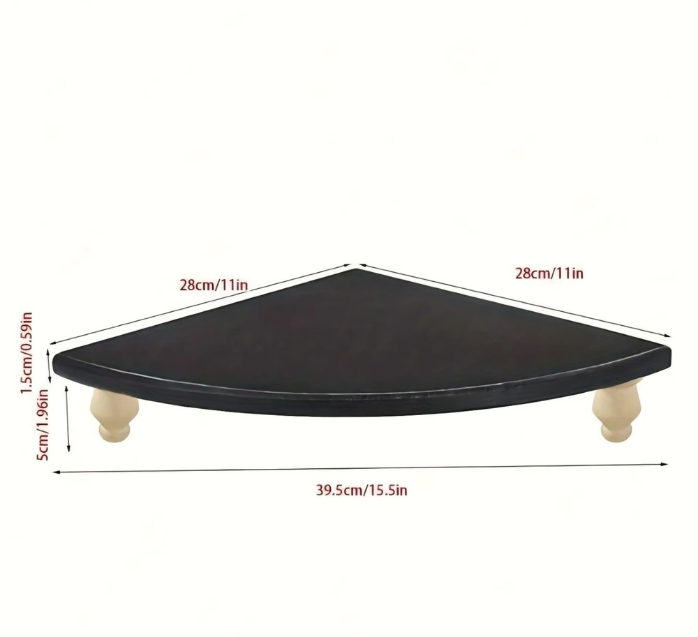 Add height, warmth, and farmhouse charm to any corner space with this beautifully styled rustic wooden corner riser . Designed to fit perfectly into countertop corners, this piece instantly elevates everyday décor while keeping surfaces organized and intentional. Perfect for kitchens, bathrooms, coffee bars, entryways, or shelves, this riser is ideal for displaying candles, soap dispensers, plants, seasonal décor, or small accents. The black wood top with natural wood feet creates a modern farmhouse look that blends effortlessly with neutral, rustic, or contemporary interiors. Whether you’re styling a coffee station, bathroom sink, or decorative nook, this riser adds dimension and function without taking up valuable space. 📏 Dimensions (From Image) Front Width: 39.5 cm / 15.5 inches Side Depths: 28 cm / 11 inches each side Overall Height: 5 cm / 1.96 inches Top Thickness: approx. 1.5 cm / 0.59 inches (Corner triangle design — fits snugly into countertop corners) 🪵 Material & Finish Solid wood construction Matte black painted top Natural wood feet Rustic farmhouse finish Freestanding design 🏡 Ideal Uses ✔ Kitchen corner riser ✔ Bathroom sink organizer ✔ Coffee bar display stand ✔ Farmhouse countertop décor ✔ Candle or plant stand ✔ Shelf or table riser 📦 What’s Included 1 × Wooden Corner Riser (as shown) Accessories shown in photos not included 🚚 Shipping & Handling Ships securely packaged Ready to use out of the box Free shipping if applicable per your listing settings Item Specifics Condition: New Type: Display Riser / Stand Shape: Corner Triangle Material: Wood Color: Black & Natural Wood Style: Rustic, Farmhouse, Modern Room: Kitchen, Bathroom, Entryway, Living Room Mounting: Free Standing