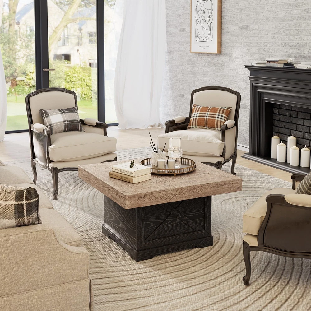 Lareth Square Coffee Table 31.5 inch Wooden Center Table for Living Room Modern Farmhouse Cocktail Coffee Table Rustic Coffee Table Natural Looking: It is made of engineered wooden, like a real wood grain. it suit as center table for sofa, couch, lounge which apply enough space for a family to enjoy pleasure time when chatting, relaxing, playing game in living room. Also suit for farmhouse decor, mid century modern style. Square Living Room Table : square accent table suit for mid century style family, modern farmhouse decor. No matter family use, or couples’ love house, or apartment, dorms’ use. It could be a center table, also could be a desktop for working, eating, or an end table. Even could be a meeting table in conference room. Space Saving: Made of premium FSC-certified engineered wood. Enough desktop saves a lot of space for compact space, The 31.5-inch square tabletop offers plenty of room for drinks, books, decor, and snacks while keeping a compact footprint. It could be a living room table surrounding a large set of sofa or in a small space. Sturdy Base with X Design Living Room Tables: modern X-design bring modern rustic decor, also make the wooden base more stability. wide desktop apply more space whiling seat on the rug around center table. a little protector comes on the base which protect your rug. X-decor design makes the coffee table attractive in living room. 31.5inch Coffee Table for Small Space: total size: 31.5x31.5x18.1 inches(LxDxH), the engineered wooden base size:30.5x17.5 inch(LxH). Easy Assemble and Buy it with Confidence: mid century modern coffee table for living room is easy to assemble with detailed institutions and assemble video on the product page. The coffee table would be shipping in special custom box to protecting product.