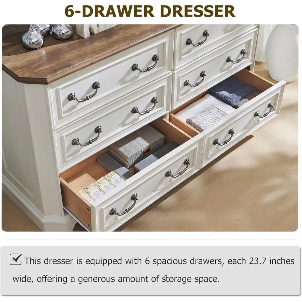 $ 203.8159" Fluted Wood Dresser with 6 Drawers & Hooks for Bedroom Storage