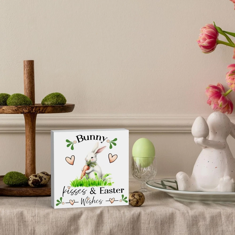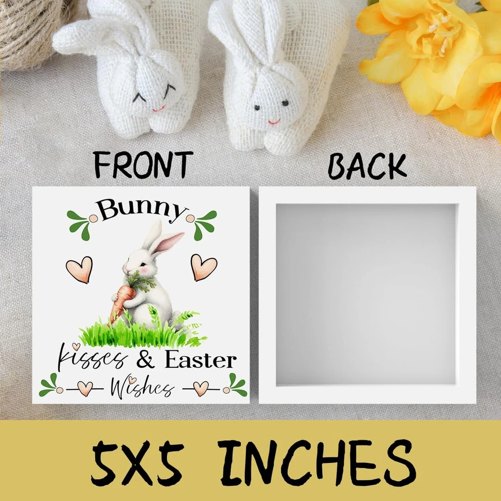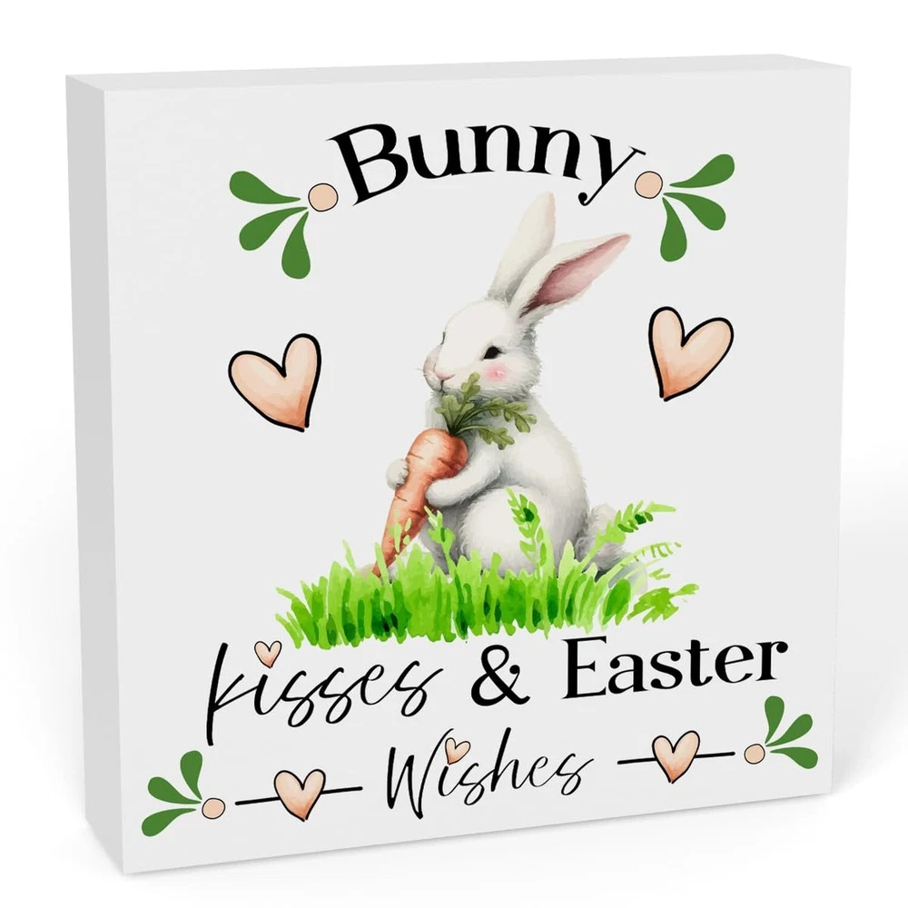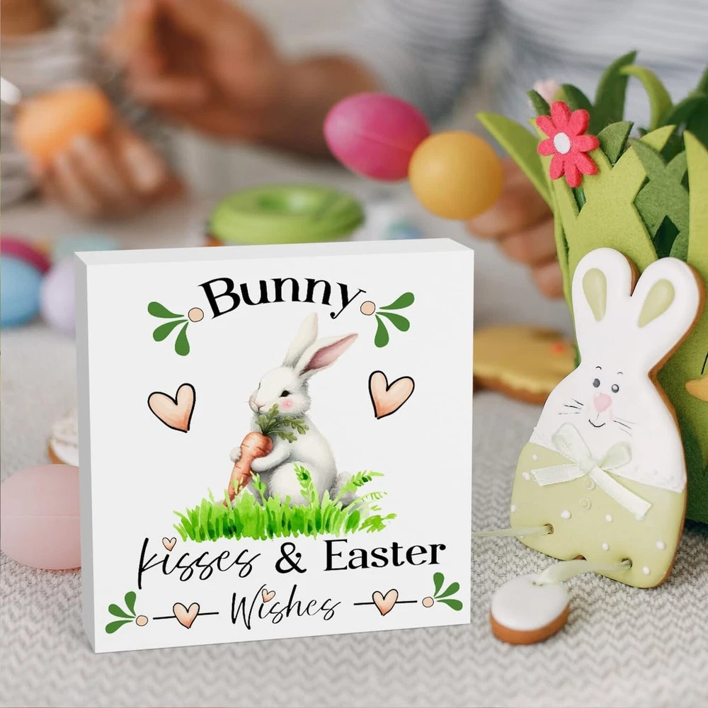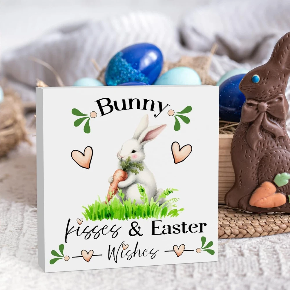 Rustic Farmhouse Bunny Easter Decorations Spring Country Home Office Desk Decor Bunny Kisses Easter Wishes Sign Cubicle Shelf Tabletop Tiered Tray Decor Gifts for Her 5 X 5 Inch Product Details Color: Bunny Brand: WRSUNT MPN: WRSUNT1105 UPC: Does not apply EAN: Does not apply Color: Bunny Brand: WRSUNT Material: Wood Theme: Art Recommended Uses For Product: Decorative purposes in various indoor settings Mounting Type: Tabletop Product Dimensions: 5"L x 5"W Shape: Rectangular Item Weight: 30 Grams Style: Modern Item Weight: 1.06 ounces Manufacturer: WRSUNT Country of Origin: China Item model number: WRSUNT1105 Perfect Size - The size of this wooden sign is about 5 x 9 inch. This cute size is beautiful and takes up little space to making it perfect for desks decor and Wall shelves Decoration. Premium Material- Our wood sign is made of high-quality real wood material, which is durable, beautiful, strong and not easy to fade. It is sturdy and endearing funny gifts for women to decoration different occasions. Rustic Country Farmhouse Home Decor Design: This easter wood sign is decorated with funny language and Rustic easter themed, patterns, which will give guests a warm and harmonious rural festive atmosphere. Suitable Home office desk Accessories : This exquisite country-style wood sign can stand up on its own, meanwhile also easy to hang, this is a convenient and effective decorative choice. so making it perfect for home office desk decor, farmhouse bookshelf decor, bathroom shelf decor, cubicle decor, coffee bar table decor, bedroom kitchen campervan living room wall decor, and so on. Decorative Gifts for Women: This exquisite wooden sign, with easter theme styles and elegant appearance, is a adorable birthday, holiday, housewarming gift ideas for women, men, wife, girlfriend, her, him, daughter, guys, son, husband, girlfriend, best friend. This 5 x 5 inch easter themed cute wooden sign is beautiful and takes up little space, both can stand up on its own and can easy to hang, so making it perfect for home office desk decor, bookshelf decor, bathroom shelf decor, cubicle decor, coffee bar table decor, wall decor, women gift for birthday, easter, housewarming, mother's day etc.