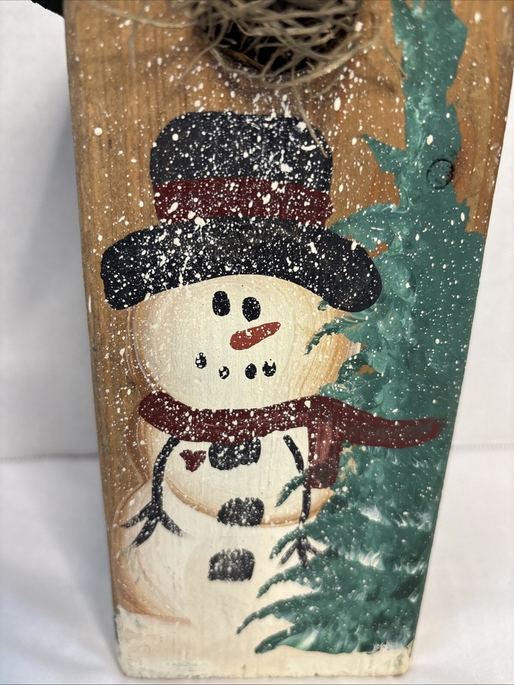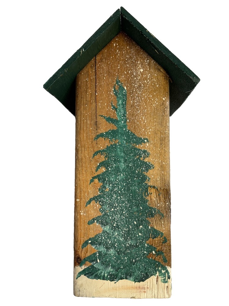 See pics for any imperfections they are part of the description. This Folk Art Wood Post Bird House features a festive Christmas Santa design, perfect for the winter season. Handmade from wood, this multicolor bird house adds a charming touch to your outdoor decor.