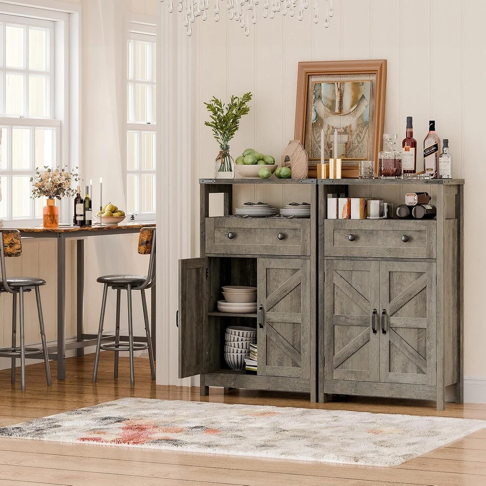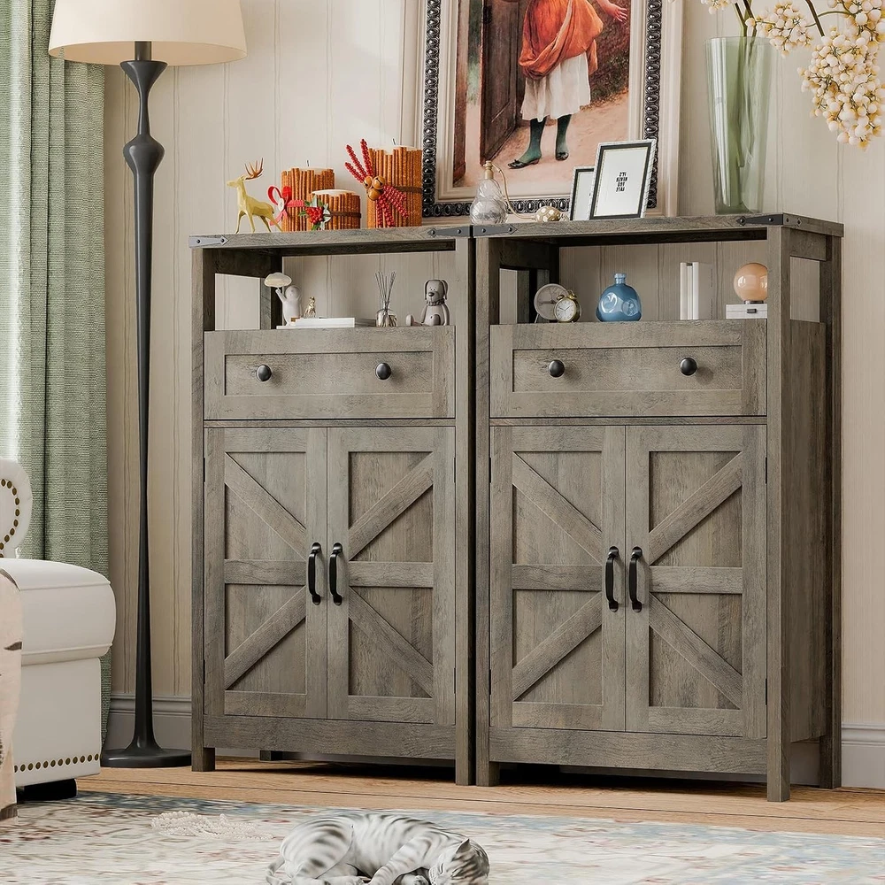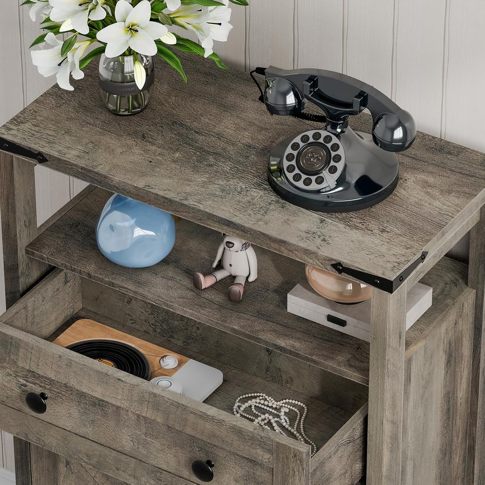 This small cabinet is a game-changer for any room! The rustic farmhouse style adds charm, while the sturdy construction holds up well under heavy items. I love the mix of open shelves and a drawer—perfect for keeping things organized yet easily accessible. The grey finish fits seamlessly into my bathroom, kitchen, and living room. Super functional and stylish!