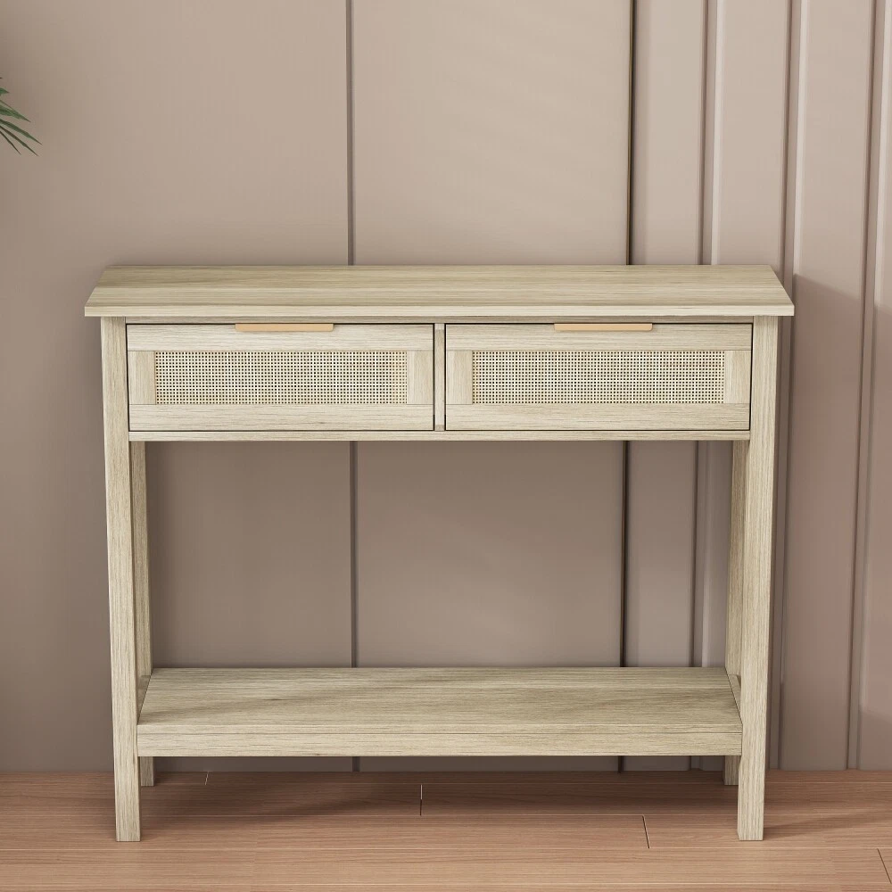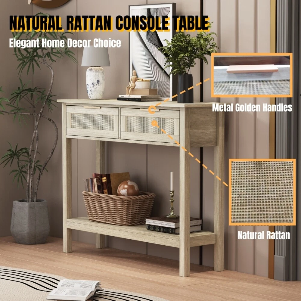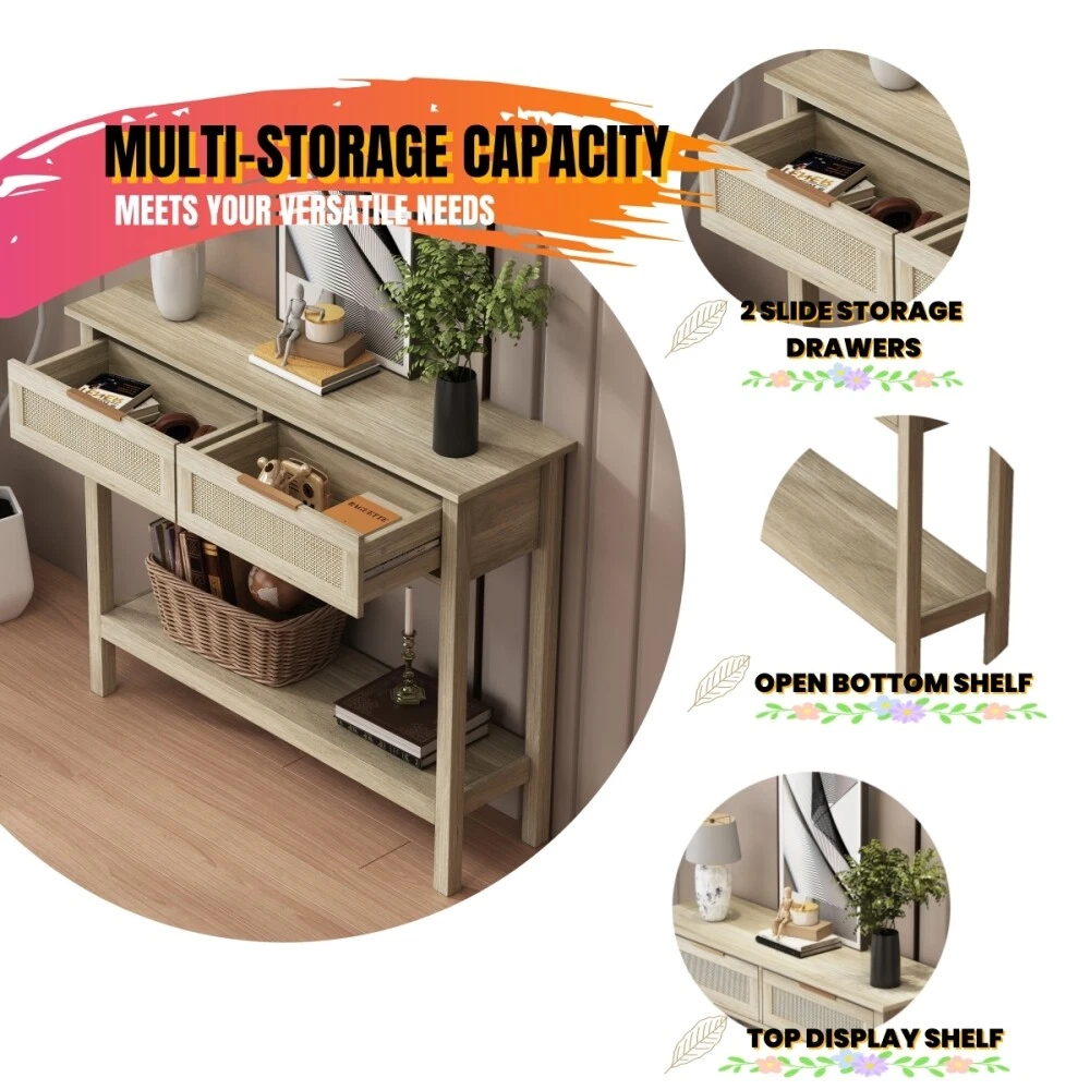 Farmhouse Design:To make your living space more elegant,This farmhouse console table designed with MDF wood, Which matches well with rustic or farmhouse furniture decoration style. Multi-Storage Capacity:The console table has 2 drawers and bottom storage shelf.The 39.4'' wide top and bottom shelf used for storing and organizing your items which makes your primary living space clean and tidy. Durable and Sturdy:The sturdy MDF material and metal Handle and corner decor make the console table stable. Anti-tipping device on the back to keep the console stable safe to your baby. Multi-purpose usage:The 4 legs storage table can be used as a console table,sofa table,entry table,small TV table,coffee bar table or display stand in your bedroom,living room,dining room.Saving a lot of space for your living space. Easy to Assemble: This console table has all the tools,accessories,and instructions for quick setup. Farmhouse Console Table with 2 Drawers and Bottom Shelf for Entryway,Living room Rustic style wood console table with metal handles and corner decor,it has 2 drawers and a bottom shelf to to storage items,The stable MDF structure makes the console table more durable. Metal Handles and Corner Decor The metal handles and tableside decor not only make the entryway table more stable, but also enhance the rustic style. Smooth Drawer Slides The slide rail, which is also made of metal, can make it easy for you to use it with less effort. Stable Legs and Bottom Shelf The storage shelves at the bottom give the storage space a variety of things, and the thickened legs make the entryway table more durable and not deformed. Payment 1. Payment should be completed within 3 (Three) days of auction closing. Or unpaid dispute will be filed for closing auction automatically. 2. If for some reason there is any issue with the payment, please contact us, and we will be glad to work with you to have it resolved. Shipping 1. Package handling only takes 3 business day at our warehouse, so please make sure entering correct payment and shipping information before checking out. 2. According to eBay policy, we only ship to eBay ADDRESS. Once your payment is completed, you can leave eBay note or click the button named “contact seller” in your purchase history if the changes are needed before we send the product. 3. If an address change is needed after sending your item, you will be responsible for any fees associated. 4. Orders placed on weekend will be shipped within 3 business days. Terms of sales 1. All of our items come with a 30-day return policy. We ensure all our items are new and in excellent condition prior to shipping. In the event that you receive the item that is not to the standards above, please contact us via eBay messages. All returns should be shipped with delivery confirmation.New items must be returned unused, undamaged, in the original packaging. 2. Please note that all returns must be pre-approved by us. Unauthorized returns will not be accepted. If you need to return, please check twice to confirm the item not work and contact our customer service representative, let us know the detailed problem and send us some pictures for confirmation. 3. All NON-seller mistake returns for refund are subject to 20% re-stocking fee and buyer should pay for the round-trip shipping fee. (E.g. you bought wrong model or wrong color). 4. We ONLY accept the return for original package. Please make sure that item has NO man-made sabotage. Used items will not be accepted for return. 5. We reserve the right to refuse any returns for objective reasons. Feedback 1. If you are satisfied with the product you received, please leave us positive feedback and 5 star comment, which will be highly appreciated. 2. If there is any problem about your order, please contact seller prior to leaving feedback, and we will be glad to work with you to have it resolved. 3.If you are dissatisfied for any reason, please do not be quick to leave negative or neutral feedback. We’ll try our best to resolve any problem for you to make EACH CUSTOMER 100% SATISFIED and always leave positive feedback to all our customers. Contact us 1.Before purchasing, you can contact us directly by clicking "Ask a Question" at bottom of this page. 2. After purchasing, you can contact us by clicking the button named “contact seller” in your eBay purchase history. 3. We will answer your question within 24 hours(except Holiday). FAQ Q: How do I pay for my purchase? A: We only accepts the payment method Paypal. Q: When will the item be shipped out? A: The item will be shipped within 3 business day once payment completed. Q: Where is my tracking number? A: Some of our parcels are shipped with tracking <, and u could check it as the following steps: Please log on your account. Click ”my eBay”----->”My Summary” or open your emailbox and find the shipping notification email. Q: How do I return an item? A: We accepts returns. Item must be returned within 30 days. You will be refunded within 5 working days of receiving your money back:The returned goods have been received. Please contact our customer service before you return an item.