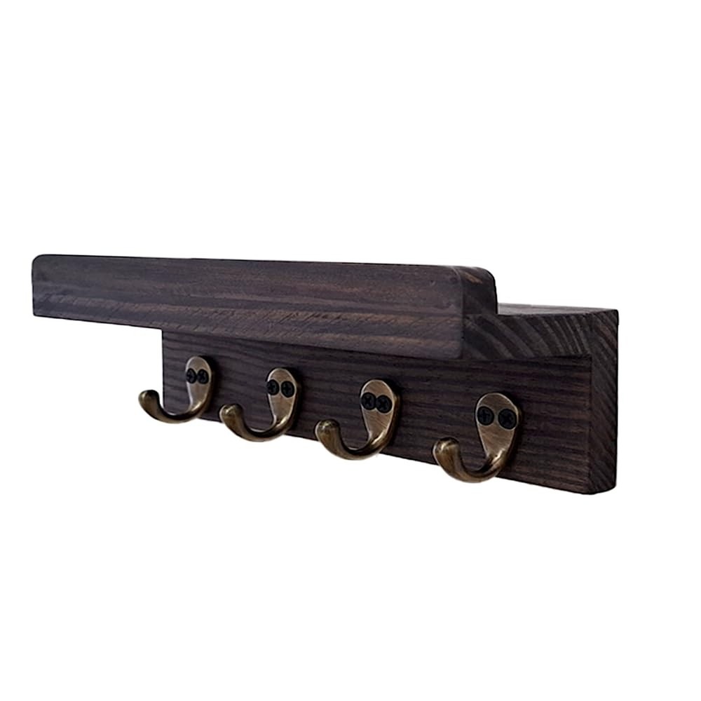 Rustic Key Holder, Farmhouse Shelf with 4 Hooks, Wall Mounted Key Racks, Wooden Mail Organizer with Hooks for Entryway (Black-Pine) Product Details Color: Black-Pine Brand: Purearth MPN: KH-Omega-W3 EAN: 3870003666087 UPC: Does not apply Color: Black-Pine Brand: Purearth Material: Pine Finish Type: Polished Mounting Type: Wall Mount Color: Black-Pine Brand: Purearth Material: Pine Finish Type: Polished Mounting Type: Wall Mount Style: Rustic Weight Limit: 8 Pounds Special Feature: Handmade Recommended Uses For Product: Garage, Holder, Key Hanger, Key Holder, Kitchen, Laundry, Rack, Shelf, Wall Shape: Rectangular Item Weight: 0.3 Pounds Included Components: Accessories Item dimensions L x W x H: 9.8 x 3 x 3.9 inches Number of Hooks: 4 Minimum Weight Capacity: 8 Pounds Surface Recommendation: Indoor Maximum Weight Recommendation: 10 Pounds Manufacturer: A10 Design Private Limited Item Weight: 4.8 ounces Product Dimensions: 9.8 x 3 x 3.9 inches Item model number: KH-Omega-W3 Finish: Polished Item Package Quantity: 1 Maximum Weight Capacity: 8 Pounds Special Features: Handmade Batteries Included?: No Batteries Required?: No Date First Available: July 12, 2022 Sturdy and Practical: Purearth farmhouse key hooks is made of solid wood with fine workmanship, helping you to organize small items and blends well with any home decor style. Multifuctional Floating Shelf: L-shape shelf prevents things from falling, and holding your mail, bills. Photo frames or potted plants can also be placed on this key rack. Versatility Hooks: The vintage key holder for wall decorative has 4 hooks, perfect for hanging keys, sunglasses, umbrellas, dog ropes, etc. Organize Your Space: Key hooks for wall can be put in any place that needs to be stored, such as entryway, bedroom, kitchen, bathroom, garage or laundry room, it can also decorate your home. Easy to Install: Comes with installation guide, screws and anchors are easy to assemble, and heavy load capacity of this key hanger has 6lbs. Dimension: 24.5 cm x 7.5 cm x 6.5 cm Rustic Key Hooks for Wall The wall mounted key holder is used for organizing and storing all the important keys in one place within your eyesight. Using a key holder is a great habit to have, just hang the key on the key hooks at the moment you enter the home, and you will never forget to lose the key again! SPECIFICATION Size (L x W x H): 24.5 cm x 7.5 cm x 6.5 cm Material: 100% Natural Wood Color: Brown Weight: 0.8 lbs/ 400g