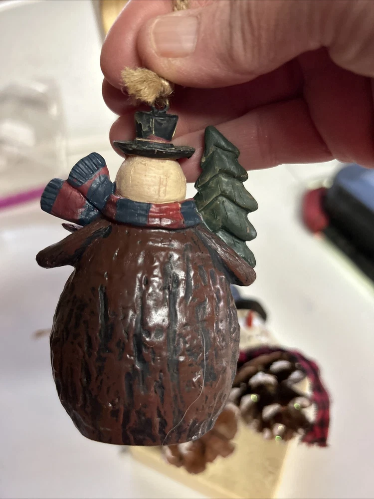 Rustic Lodge Snowman Christmas Ornament 4" Hanging Holiday Cabin (3) Vtg