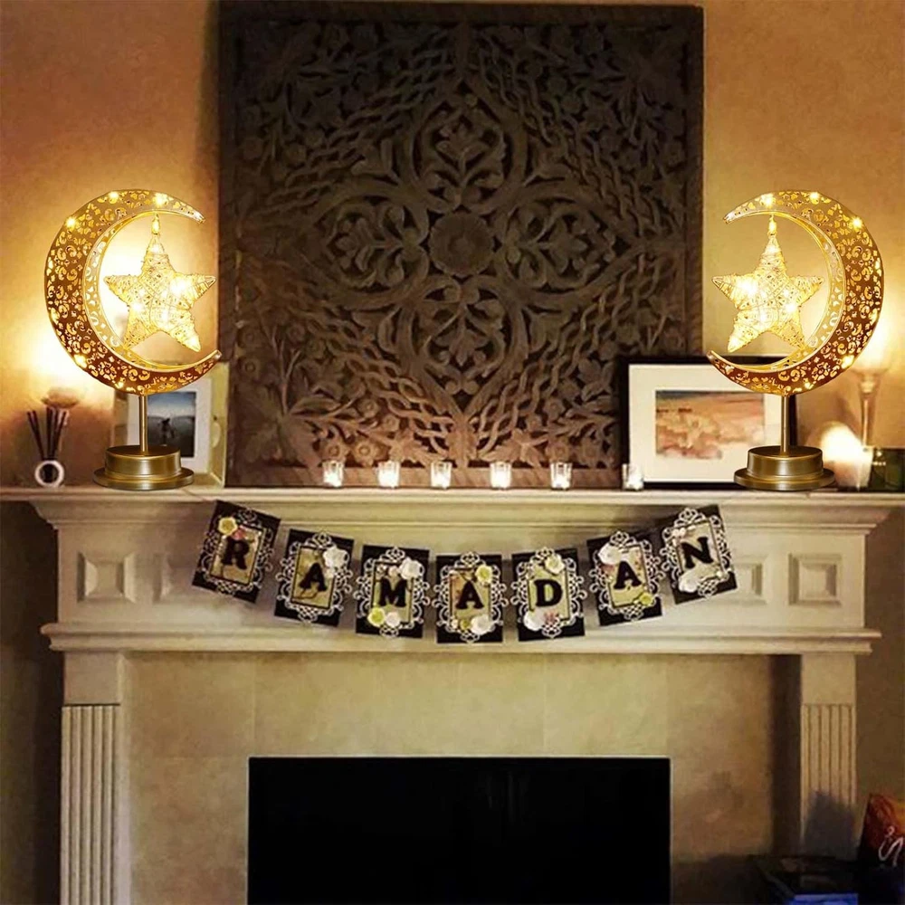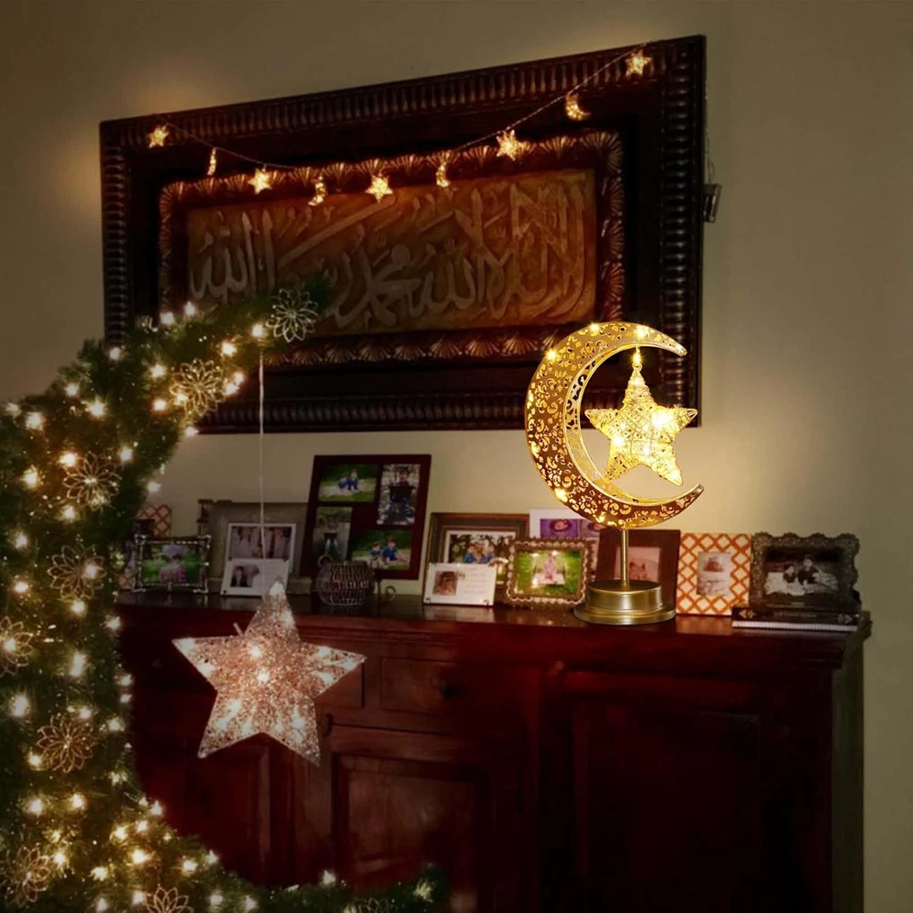 Store New Arrivals Add to Favorite View Feedback Contact Fast deliveries to the customer's home Quality customer service John Make the customers happy! Rustic Moon Lamp for Ramadan Decorations,Battery Operated Metal Rattan Star Moon Ramadan Lights for Home Bedroom Decor Boho Farmhouse Kitchen Dinner Ramandan Table Desk EID Mubarak Decorations Description 【Nice for Ramadan Decor】Made of vintage metal with cozy fairy string lights, this bronze rustic star moon lamp adds a nice special ambient during iftar and suhoor time. Perfect for Ramadan decorations. The soft warm lights is neither too bright nor too dark, can be used as night light for kids bedroom. 【Battery Operated Ramadan Lights】Powered by 3 x AA batteries(NOT INCLUDED), safe and easy to use, convenient to move and decorate anywhere you want. Decorating ramadan for bedroom bedside, kitchen, cabinet, dinning room, table, fireplace, mantle, yard parties, etc. 【Premium Ramadan Table Lamp】High quality bronze metal, rustic hollow out style, super cute and festive, specially designed for Ramadan decorations. This decorative Crescent moon star lamp looks so beautiful and unique both day and night. 【Any occasions decor】Add festive touch to entrance during ramadan eid Mubarak. Ideal for using on a table, on the bedside desk, in front of a window in bedroom, on ramadan fireplace mantle, you will reveive numerous compliments from neighbors and visitors. 【Ideal Ramadan Decor】Great Ramadan decor for friends, family and lovers. It can be used as a table lamp, kids night lights for bedroom, desktop nightstand. Also perfect boho decor, great rustic decor for bohemian style enthusiasts. Product Description Upgraded Rustic Metal Moon Lamp for Ramadan Decorations, Nice for Home Ramadan Decor This star moon shaped lamp is made of hollow out design vintage metal with cozy fairy string lights, adds a nice festive during ramadan eid holiday. The soft warm lights is neither too bright nor too dark, can be used as night light for kids bedroom. This rustic moon lamp is so beautiful and unique both day and night, perfect Ramadan decorations for home. Battery Powered Ramadan Decorative Lights, Portable to take anywhere Powered by 3 x AA batteries(NOT INCLUDED), safe and easy to use. No wires, safe and convenient, easy decoration and lighting in areas without power outlet. Ideal for using on a table, on the bedside desk, on fireplace mantle, bedroom bedside, kitchen, cabinet, dinning room, table, fireplace, yard, parties, etc. Item model number HLD584 Light Source Type LED Style Vintage Number of Items 1 Power Source Battery Powered Number of Light Sources 5 Control Method Touch Lighting Method LED Lamp Type led Cartoon Character Rattan Room Type Office, Ktichen, Dinning room, Bedroom, Living Room Bulb Shape Size A19 Product Dimensions 11"D x 5"W x 7"H Material Rattan, Plastic, Metal Collection All Efficiency Energy Efficient Finish Type Natural Included Components 1 x Star-shaped lamp Indoor/Outdoor Usage Indoor Water Resistance Level Not Water Resistant Batteries Required? No Item Weight 12.3 ounces Connectivity Technology USB Special Features Cordless Special Feature Cordless Shade Height 7 Inches Shade Color clear Mounting Type Tabletop Color Bronze Is Cordless? Yes Base Material Metal Is Waterproof false Voltage 4.5 Volts (DC) Recommended Uses For Product Decoration Shade Material Metal Finish types Natural Switch Type Touch ABOUT US We offer the best prices around on high quality products. Our E-store includes media such as books, movies, music and games while offering electronics, toys, sporting apparel, clothing, tools, general home, garden items and more. SHIPPING We are always working hard to ensure your package arrives as soon as possible. Please understand that some factors like weather, high postal traffic, and the performance of shipping companies are outside of our control. We offer free shipping to the lower 48 states and ship within 2 business days of payment, usually sooner. We do not accept P.O. Boxes. Please provide a physical address. For shipping outside of the continental USA, we only use eBay's Global Shipping Program. The item is shipped to KY and then sent to the rest of the world. International customers are responsible for all duties and taxes. Continue to 'check out' to calculate costs for shipping the item to your country. Messages regarding eBay's Global Shipping Program MUST be directed at eBay EXCLUSIVELY. RETURNS We offer a 30-Day Return Policy on items in which you are not completely satisfied with. You have the option of a full-refund or an exchange of the item. No returns are available on items shipped outside of the USA PAYMENT We accept PayPal. CONTACT US This page content is yet to come Please ad us to your favorite seller and visit again later Thank You CUSTOMER SATISFACTION We try our very best to make sure every customer is completely satisfied. If there's a problem, message us! We're happy to help. WE ACCEPT