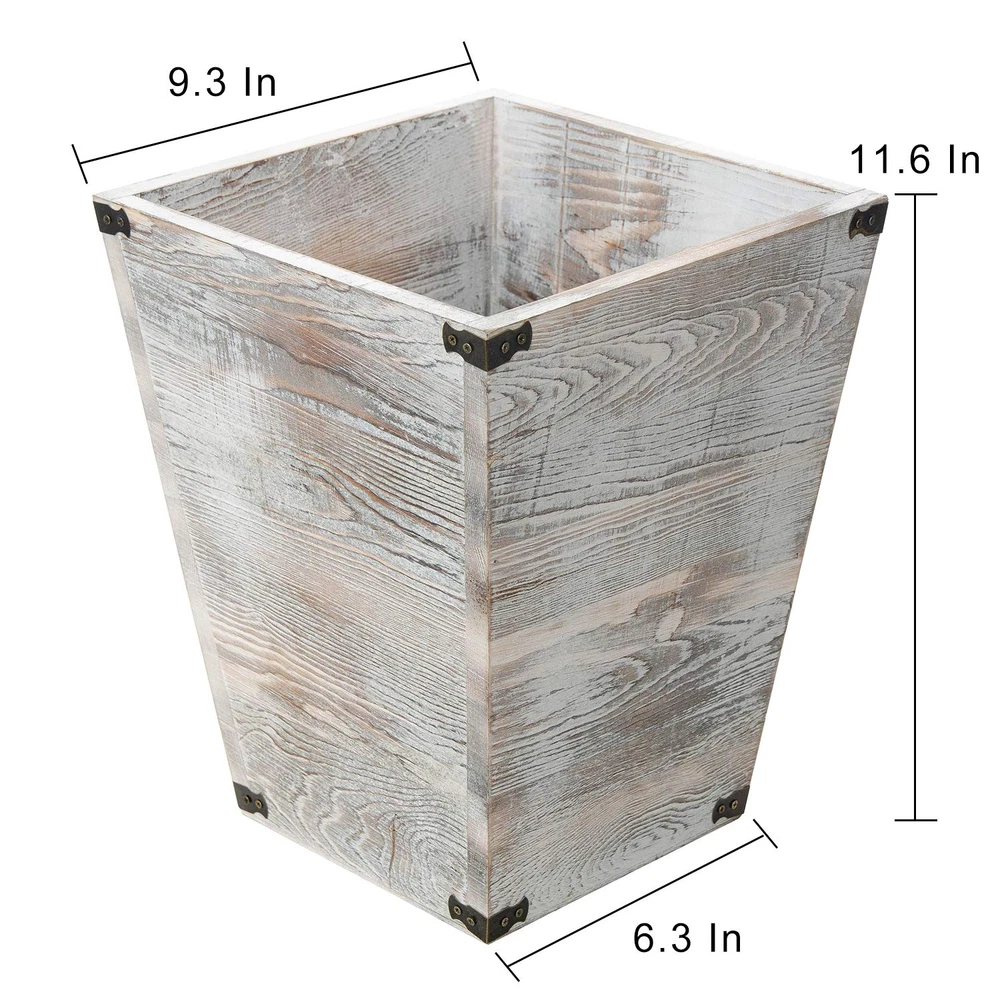 Store New Arrivals Add to Favorite View Feedback Contact Rustic Whitewashed Torched Wood Square Waste Basket Recycle Bin Trash Can Decorative Metal Brackets Whitewashed Wooden Garbage Container Ash Holder Bedroom Living Room Home Office Description Item model number HOM0029 Room Type 客厅,厨房,卧室 Capacity 900 Cubic Feet Color white Special Feature 安静关闭 Product Dimensions 9.37 x 9.37 x 11.75 inches; 2.8 Pounds Material 松木 Shape Square Opening Mechanism Step-On Recommended Uses For Product 室内使用 Finish Type Rustic Chic Torched Wood Wastebasket: Simple yet charming rustic-style whitewashed wooden trash bin crafted with a beautiful whitewashed finish, keeping your space tidy and clean while making a stylish addition to your home décor Versatile Trash Container: Designed to have a wide, square opening and rectangular walls tapering slightly to the bottom, this wooden bin boasts large capacity and ensures easy throwing; spacious yet reasonably-sized, the bin fits in any corner of your living spaces or workstations for you to throw away stuff whenever you need Perfect for Home & Office: Excellent garbage holder for your bedroom, living room, bathroom, kitchen, study, office, and any other place where trash cans are needed, complementing any farmhouse, industrial, contemporary, or urban design Sturdy & Durable: Made from high-quality wood that withstands long term use; decorated with four corner metal brackets for added elegance and extra sturdiness Approximate Dimensions (in inches): 9.37 W x 9.37 D x 11.75 H VINTAGE TORCHED WOODEN WASTE BASKET FOR HOME & OFFICE: Keep your space tidy and neat with this adorable whitewashed trash holder. Crafted from sturdy wood and decorated with industrial-style metal brackets on the corners, this wooden container is given extra charm and reinforced strength. Set one in your bedroom, living room, kitchen, bathroom, or office as a wastebasket, recycle bin, or garbage can to conceal trash and brighten up your environment. ELEGANT TRASH BIN WITH GREAT CAPACITY & FUNCTIONALITY: Standing nearly 1 foot tall and featuring a wide square-shaped opening, this versatile garbage boasts large storage space and allows you to throw in trash easily. While offering great capacity, this beautifully-crafted wooden can comes in a size that ideally lends itself to placement in any corner of your home and office. EASY REMOVAL OF TRASH & CLEANING: The wide opening of this wooden trash holder also allows you to dump out stuff from the bin quickly and effortlessly. To clean the bin, simply wipe it with a soft, damp cloth. ABOUT US We offer the best prices around on high quality products. Our E-store includes media such as books, movies, music and games while offering electronics, toys, sporting apparel, clothing, tools, general home, garden items and more. SHIPPING We are always working hard to ensure your package arrives as soon as possible. Please understand that some factors like weather, high postal traffic, and the performance of shipping companies are outside of our control. We offer free shipping to the lower 48 states and ship within 2 business days of payment, usually sooner. We do not accept P.O. Boxes. Please provide a physical address. For shipping outside of the continental USA, we only use eBay's Global Shipping Program.The item is shipped to KY and then sent to the rest of the world. International customers are responsible for all duties and taxes. Continue to check out in order to calculate costs for shipping the item to your country. Messages regarding eBay's Global Shipping Program MUST be directed at eBay EXCLUSIVELY. RETURNS We offer a 30-Day Return Policy on items which you are not completely satisfied with. You have the option for a full-refund or an exchange of the item. No returns are available on items shipped outside of the USA. PAYMENT We accept PayPal. CONTACT US This page content is yet to come Please ad us to your favorite seller and visit again later Thank You CUSTOMER SATISFACTION We try our very best to make sure every customer is completely satisfied. If there's a problem, message us! We're happy to help. WE ACCEPT Copyright © 2021 AutoDS. | All Rights Reserved