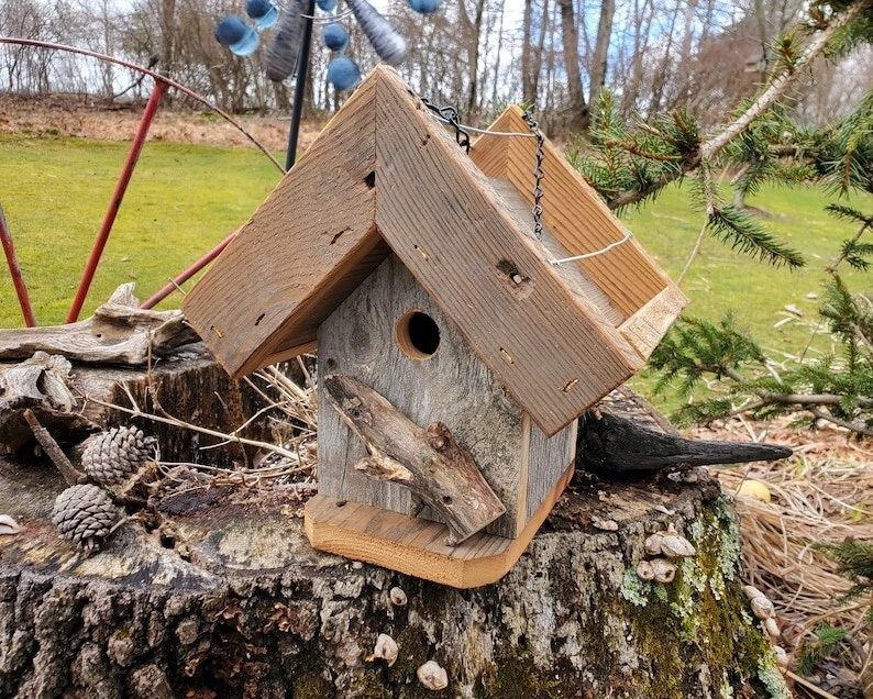 Enhance your outdoor space with this Hanging Planter Birdhouse, a perfect blend of style and functionality. Measuring 12" h x 6" w x 9" d, this versatile piece serves as both a charming planter birdhouse and a stylish addition to any farmhouse garden decor. Crafted with care from reclaimed wood, it embodies the beauty of sustainability and rustic elegance. The barn wood planter design makes it an ideal choice for those seeking rustic garden planters that double as bird havens. Its unique construction adds a touch of natural beauty to your garden while providing a cozy space for birds to nest. This hanging planter for birds is perfect for any rustic outdoor decor setting, seamlessly blending with your farmhouse hanging planter collection. As a standout piece of reclaimed wood garden decor, this hanging wooden planter birdhouse is a thoughtful and unique gift for bird lovers. Its rustic charm and multifunctionality make it a favorite among nature enthusiasts and decorators alike. Whether used as a centerpiece in your outdoor garden decor or as part of your rustic farmhouse outdoor decor, it’s sure to capture attention and admiration. This rustic birdhouse offers more than just aesthetic appeal. It provides a practical and eco-friendly solution for combining gardening with birdwatching. Its design reflects the timeless charm of barn wood planter birdhouses, making it a perfect outdoor birdhouse gift for any occasion. Transform your space with this garden decor with reclaimed wood, a piece that embodies rustic beauty and functional design. From its sturdy build to its charming appeal, this rustic outdoor planter is a must-have for anyone looking to elevate their outdoor space with eco-conscious style.