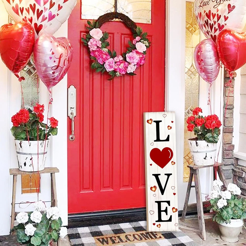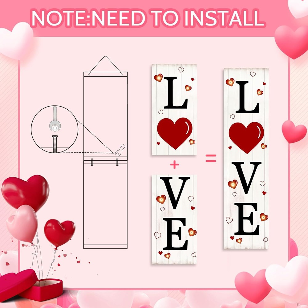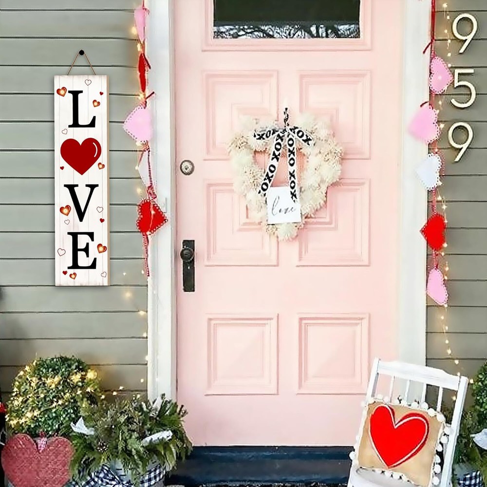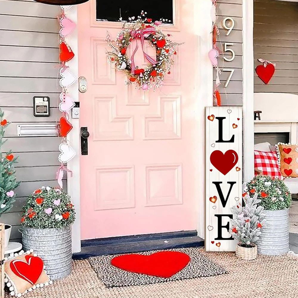 Charming Vintage Design: Elevate your Valentine's décor with this white vintage-style porch sign , featuring a classic red heart pattern that captures the timeless charm of the holiday. Glow-in-the-Dark Feature: Embedded LED lights illuminate the sign at night , creating a warm and inviting glow that enhances the festive spirit. Ideal Display Size: Once assembled, the sign measures 7.8 inches wide and 31.5 inches tall , with a sturdy back rope for easy hanging or the option to lean it against a surface. Effortless Assembly & Storage: Designed for easy setup, this porch sign comes in two equal-length wooden boards , with clear instructions and included accessories for quick assembly and disassembly. Versatile Placement: Perfect for front doors, porches, walls, or entryways , its bold red color and Valentine’s-themed design make it a standout decoration for any space. Durable & Reusable: Crafted from high-quality materials , this sign is built to last, ensuring you can enjoy its charming festive appeal year after year.