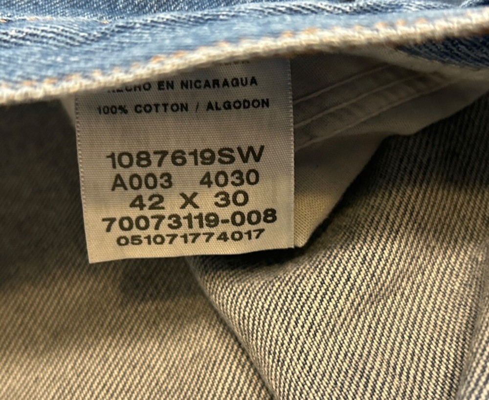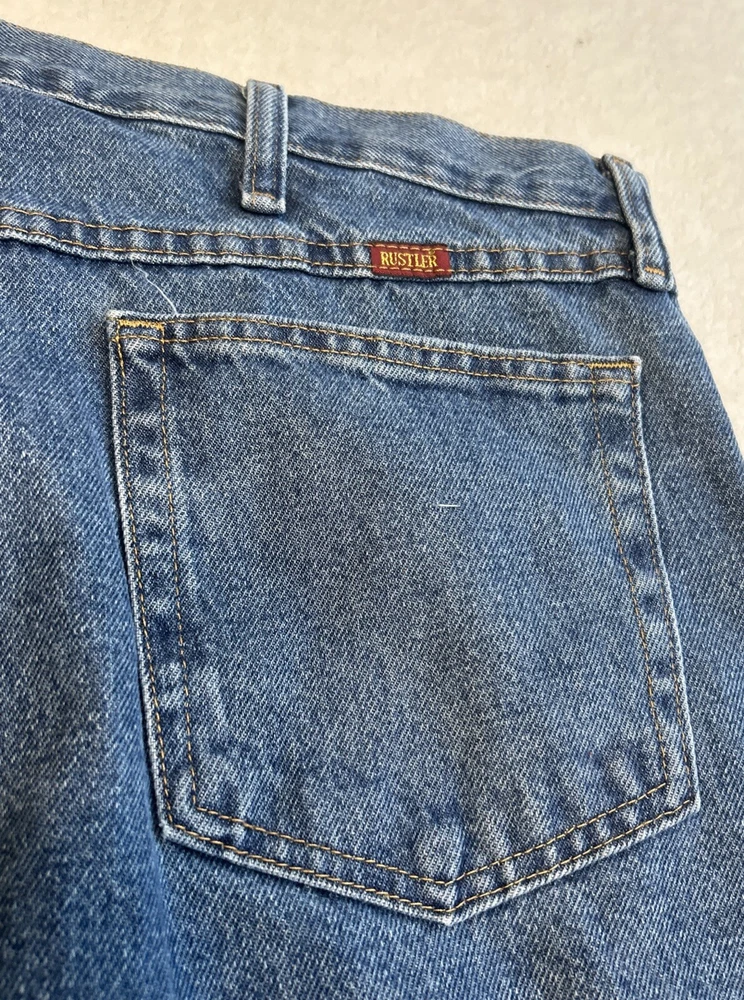 Rustler Men's Jeans Size 42x30 Cotton Mid Rise Straight Leg Denim Blue Work