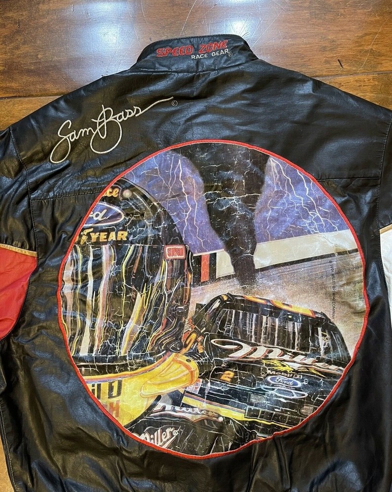 Rusty Wallace #2 Sam Bass Miller Racing Leather Race Jacket Mens X Large NASCAR Speed Zone Pre-owned in overall good condition. Condition can be seen in the photos. Artwork on back of jacket has some discoloration which can be seen in the photos. Check description for measurements. This jacket is rare and hard to find. Top to Bottom: 26.5 in Pit to Pit: 25 in Shoulder to Shoulder: 21.75 in Sleeve (From shoulder to end of sleeve): 25.5 in Ships within 1 business day of payment being received!! Checkout my other items for sale for other NASCAR gear, clothings, hats, sports memorabilia and much much more!! Don't hesitate to ask any questions!!